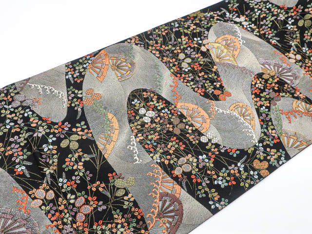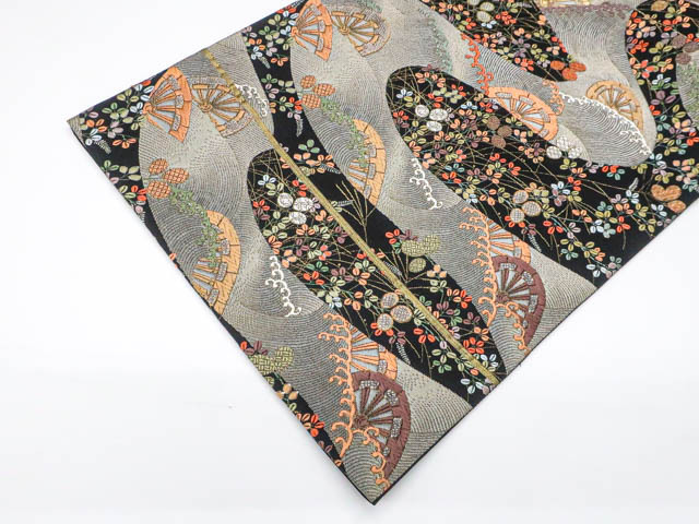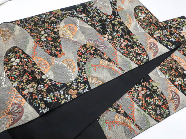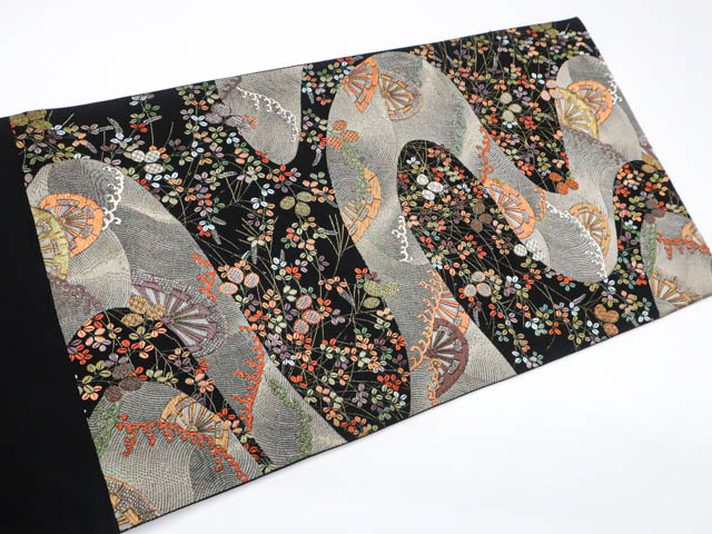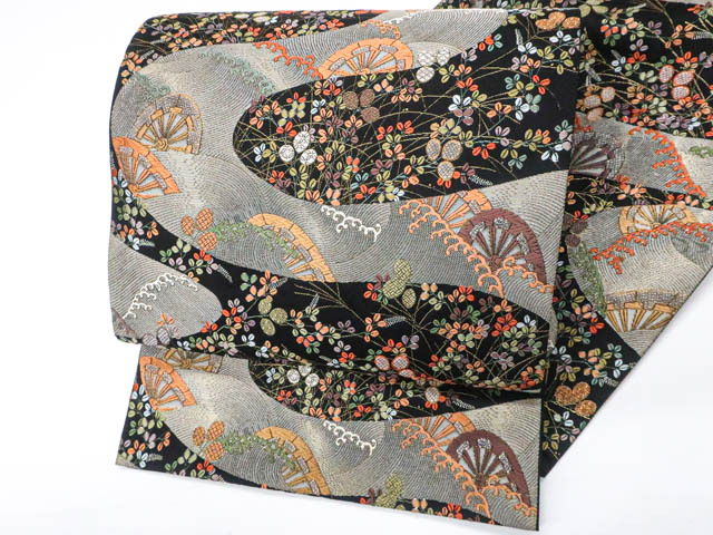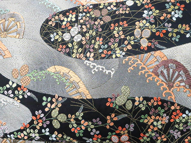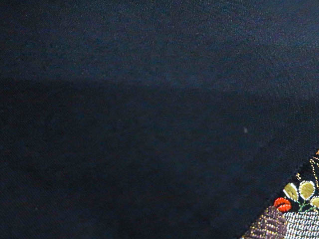リサイクル商品の為、無地場薄汚れがございますがご着用いただけると存じます。 地色は黒です。 1枚目の画像が近いお色かと思われます。 素材は正絹です。 |