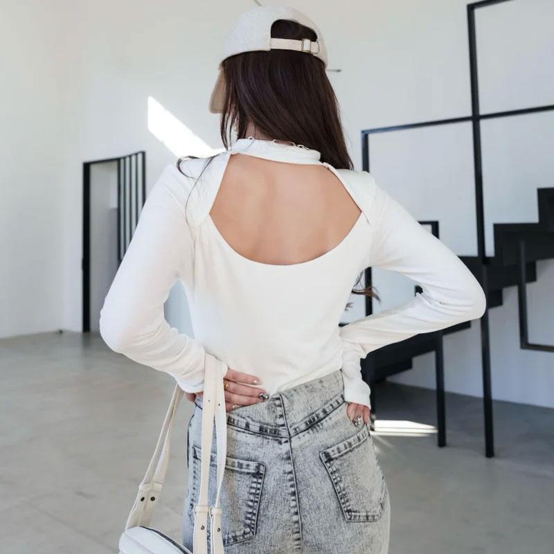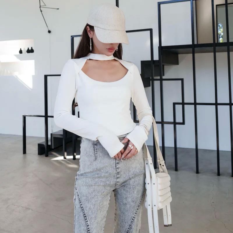 トレンドライクに仕上げたカーヴィーなCutが女性らしくデコルテ・背中を魅せるロングスリーブ☆