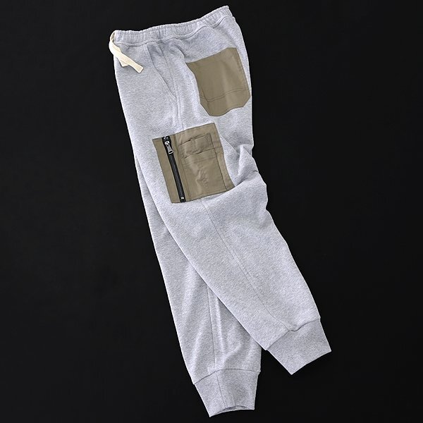| 新品 未使用 紙タグあり LLサイズ(画像は別サイズで撮影) ※商品に記載されたサイズ・寸法です※ ウエスト実寸82~102cm(内回り1周・ゴム入り) 股上35cm 股下74cm 裾幅12.5cm(リブ使用) 腿幅32cm(股下10cm部分) ※伸縮性が高い素材のため多少誤差が生じる事があります※ 本体:綿100% リブ部分:綿100% ポケット部分:ポリエステル65% 綿32% ポリウレタン3% グレー |
