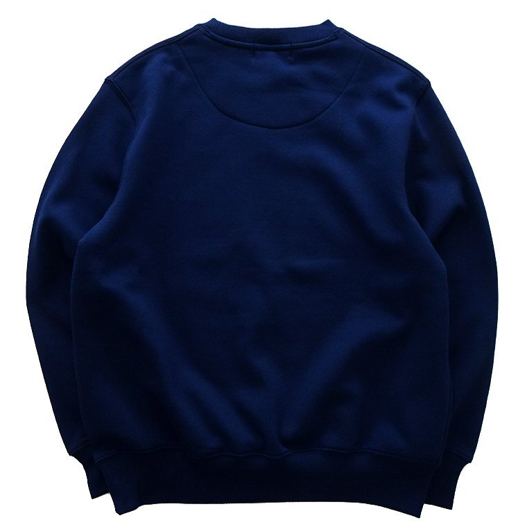 新品 未使用 紙タグあり 当社限定コラボ商品 Lサイズ(画像は別サイズを使用) チェスト96~104 ※商品に記載されたサイズ・寸法です※ 肩幅49cm 身幅58cm 袖丈61cm 着丈67cm ・本体:綿60% ポリエステル40% ・リブ部分:綿62% ポリエステル33% ポリウレタン5% 79(NAVY) |