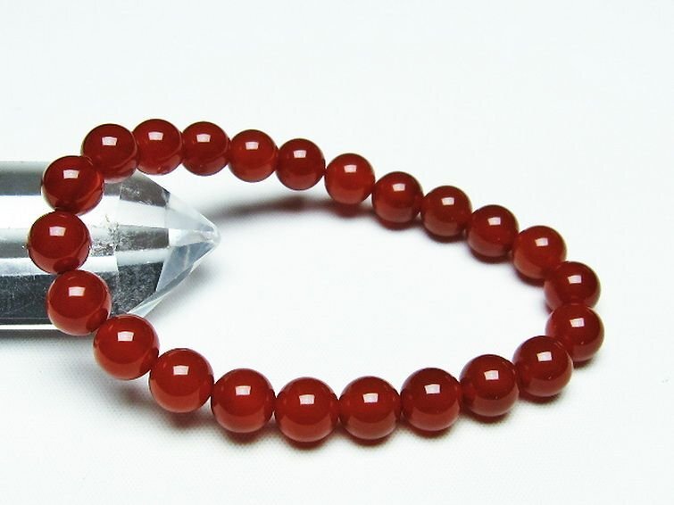 | ■商品名: 赤アゲートブレスレット ■商品ID: T57-6732 ■商品重量:約 17.3g ■商品サイズ:内周約:158mm(±5mm)粒直径約:8mm(±0.5mm) 【アゲート(瑪瑙)】 和名では瑪瑙(めのう)といい、アゲートの模様が馬の脳のように見える事からこのような名前が付けられました。 アゲートは赤、緑、青、黄、黒など、様々な色に着色されることで石本来のパワーがさらにアップするといわれており、着色により魅力を増す天然石はアゲートだけとも言えます。 さらにはアゲートを組み合わせるとペアになっているペアアゲート(トレジャーメノウ)は龍穴を生み出すとされ、風水的にも良いといわれています。 アゲートは古来より日本やインドやチベットなどで魔よけやお守りとされてきました。 失敗や不幸を遠ざけ金運や仕事運、成功運とも結び付けてくれる効果のほか、安産のお守りにも良いとされています。 さらに家庭円満や対人関係をスムーズにするなど、オールマイティな効果を持った石です。 ⇒ アゲートをもっと詳しく ◆ワンポイント情報 アゲートはカルセドニーの変種で、染色がされていなくともそれぞれの種類に多様な色があります。 ざっと仲間を挙げてみてもオニキス(黒)、サードニクス(橙色)、ブルーアゲート(青)、グリーンアゲート(緑)、イエローアゲート(黄)、ブルーレースアゲート(縞青)、モスアゲート(縞緑)、天眼石(縞黒)、カーネリアン(橙色)、ジャスパー(多様な縞)などとても多くの特徴と色合いを持っています。 |