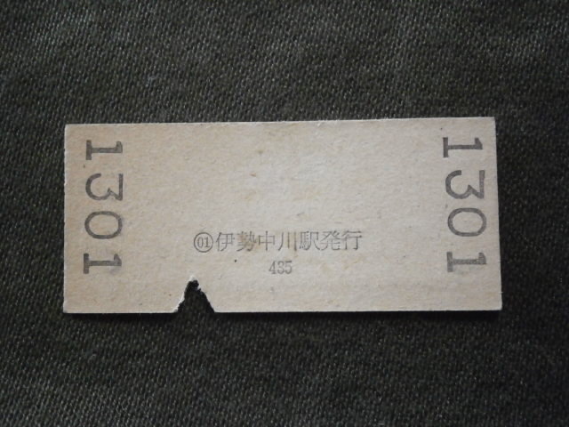 近畿日本鉄道 伊勢中川駅発行、天王寺ゆきの乗車券です。