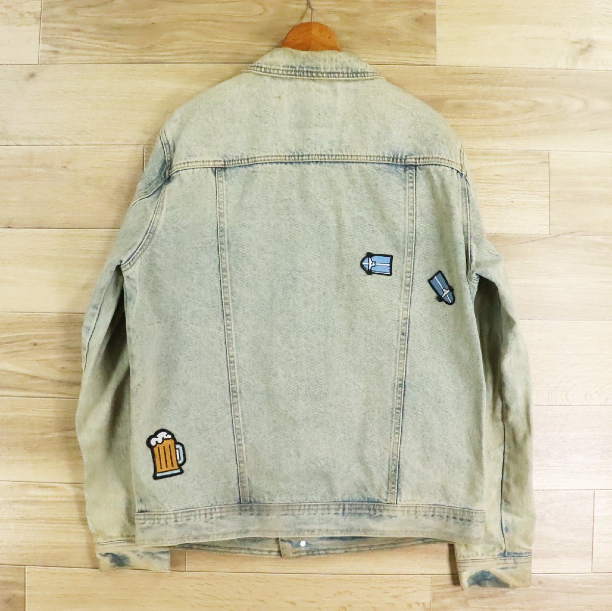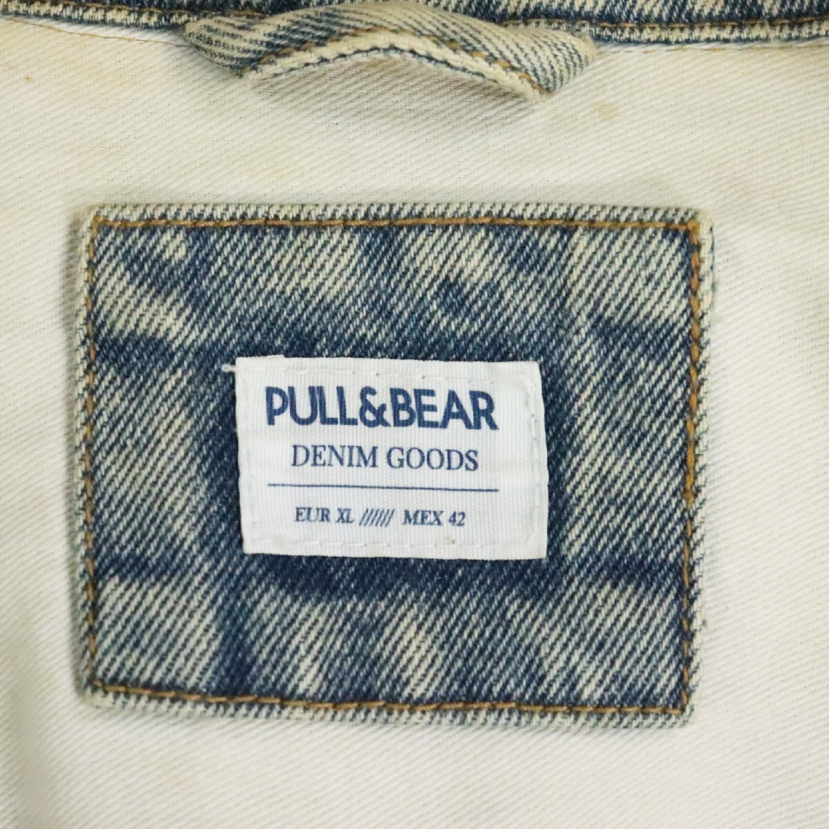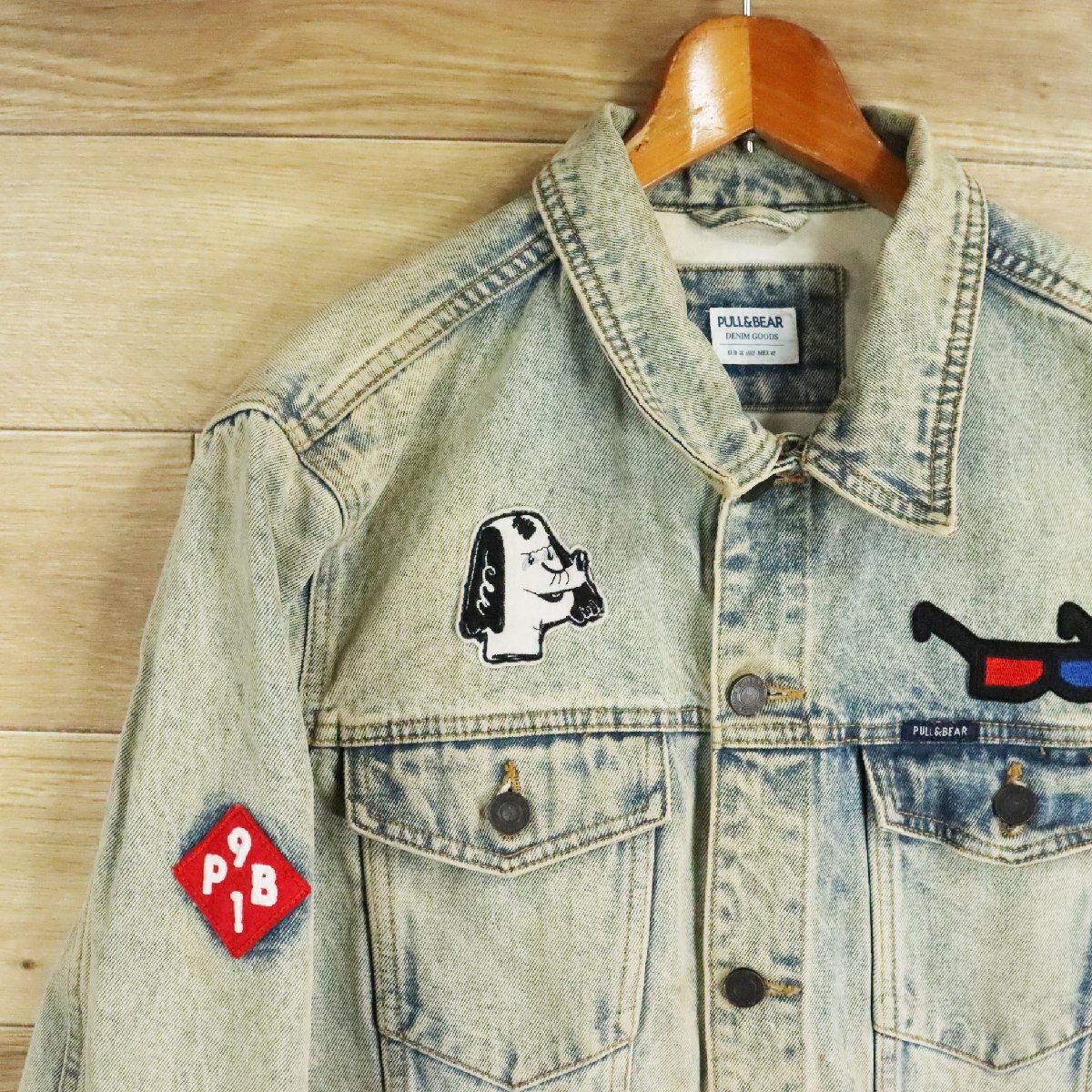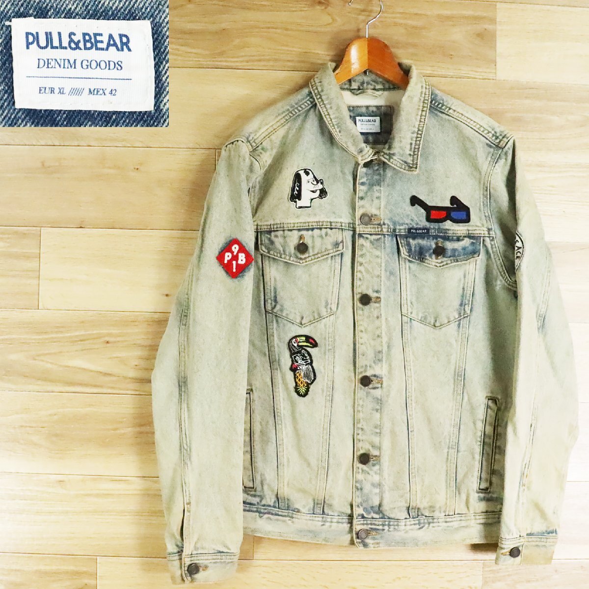 Y6S/D5.29-7 ユーロ古着 PULL&BEAR プルアンドベア デニムジャケット ジージャン Gジャン パッチ ワッペン メンズ XL ブルー系