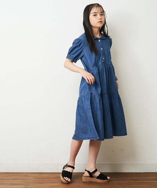 キーワード:ワンピース キッズ 子供服 ティアード 半袖 膝丈 無地