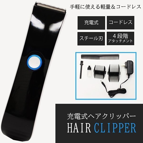 | スチール刃採用 4段階アタッチメント 充電式ヘアクリッパー |