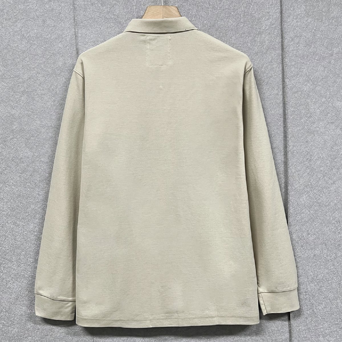 キレイめでややフォーマルな印象のメンズトップス。時代に流されないコンサバティブな長袖ポロシャツは仕事やビジネスのきれいめオフィスカジュアルファッションにぴったり。