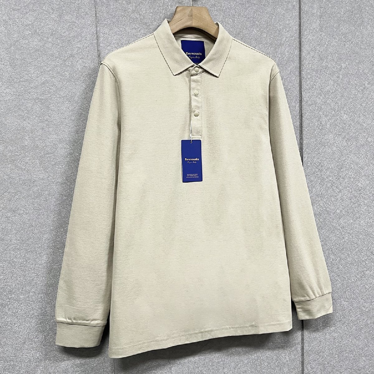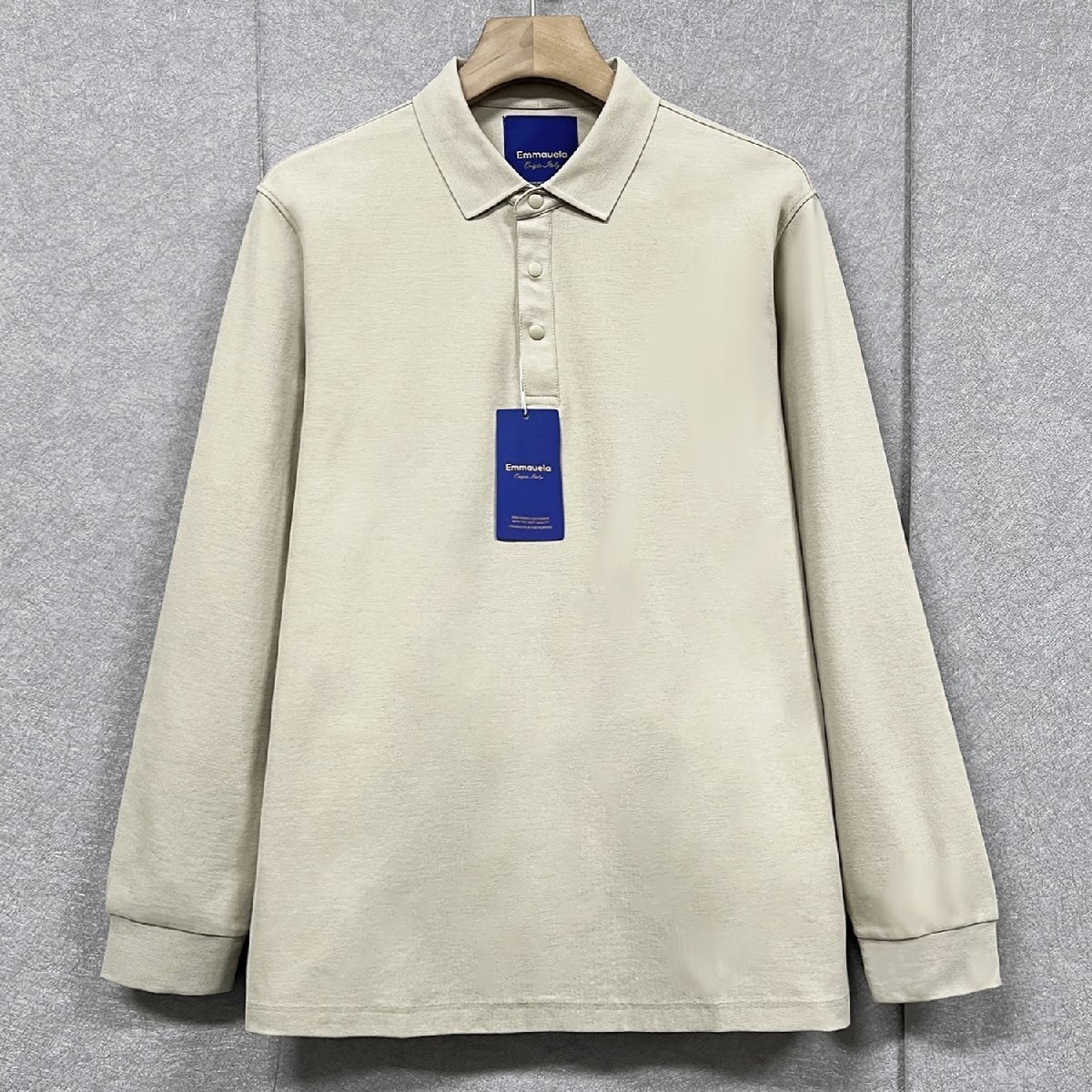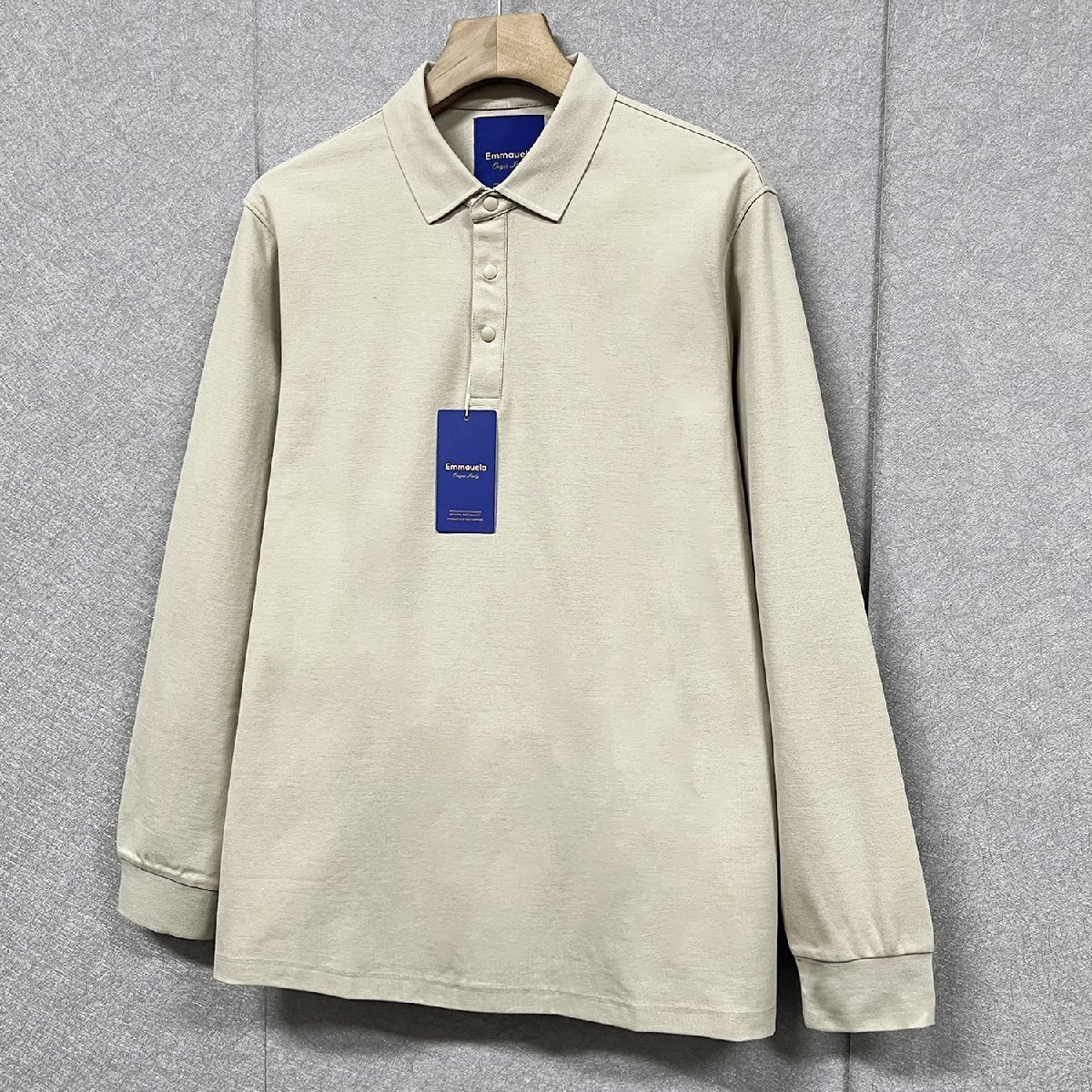 上品・定価4万◆Emmauela・イタリア・ミラノ発◆ポロシャツ 柔らか 長袖 無地 洗練 おしゃれ ビジネス ゴルフ 通勤 紳士 メンズ 2XL/52