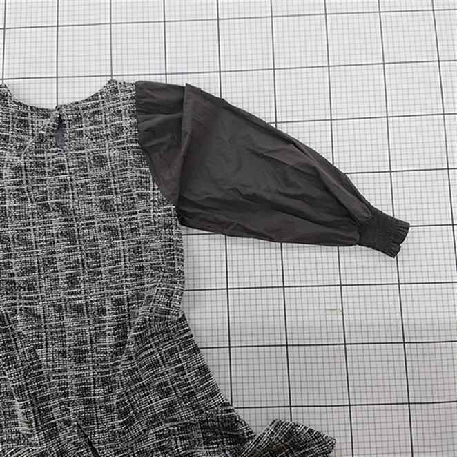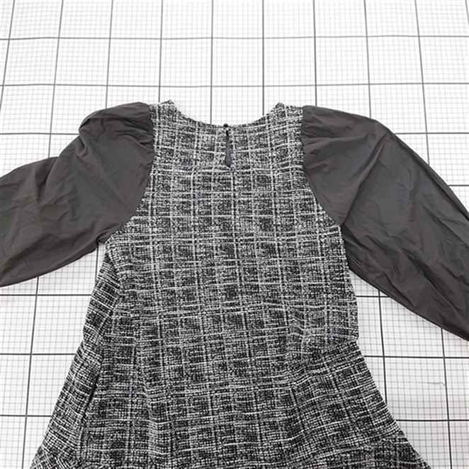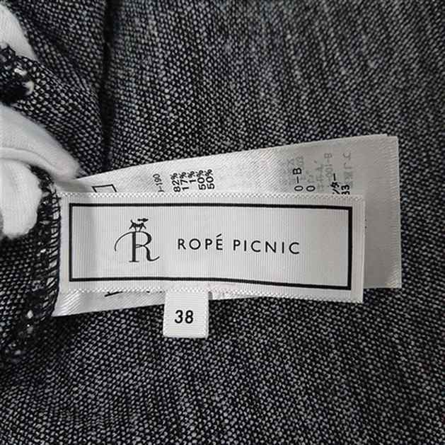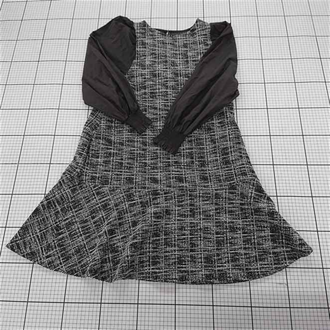 ◇ ⊆ ROPE PICNIC ロペピクニック ツイード調 切替 長袖 膝丈 ワンピース サイズ38 ブラック ホワイト系 レディース E