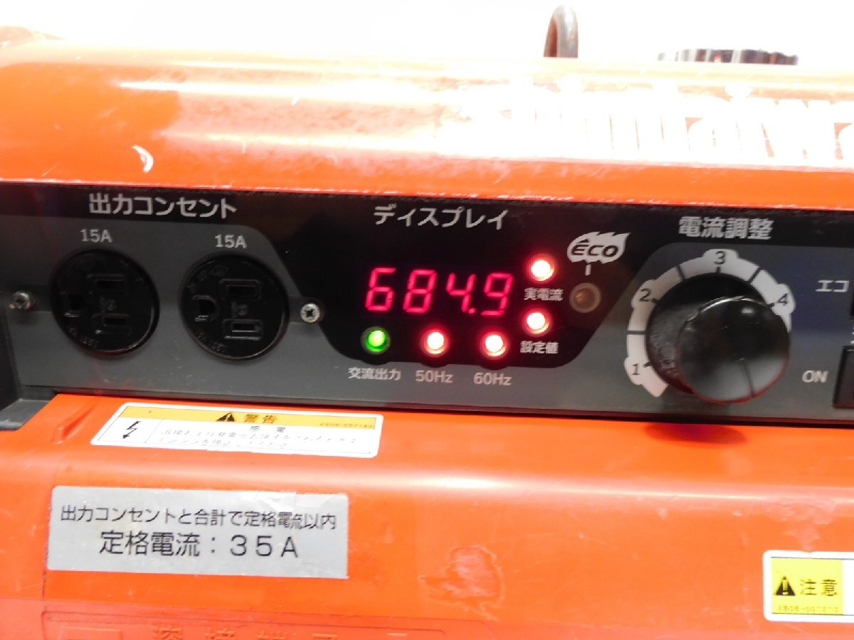 ■エコ溶接/エコ発電 ■超低騒音 ■快適・便利機能 溶接動作確認済みです。 【整備箇所】 エンジンオイル交換 キャブレター 【点検箇所】 燃料タンク エアークリーナー フィルター 燃料ホース その他調整 清掃 □溶接機 メーカー shindaiwa 型式 EGW190M-I 出力電流[A] 170A 電流調整範囲[A] 30~190A 使用溶接棒[mm] 2.0~4.0 □発電機 定格電圧[V] 単相100V 周波数[Hz] 50Hz / 60Hz 定格出力[kVA] 3.5kVA 使用燃料 ガソリン 燃料タンク[L] 約15.0 外形寸法[mm] 長さ730×幅545×高さ647 本体乾燥質量[kg] 95 |