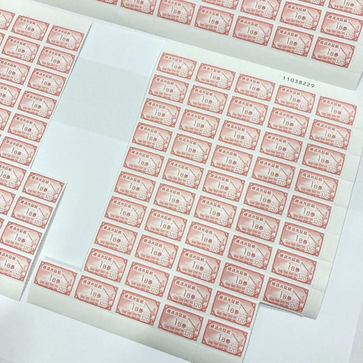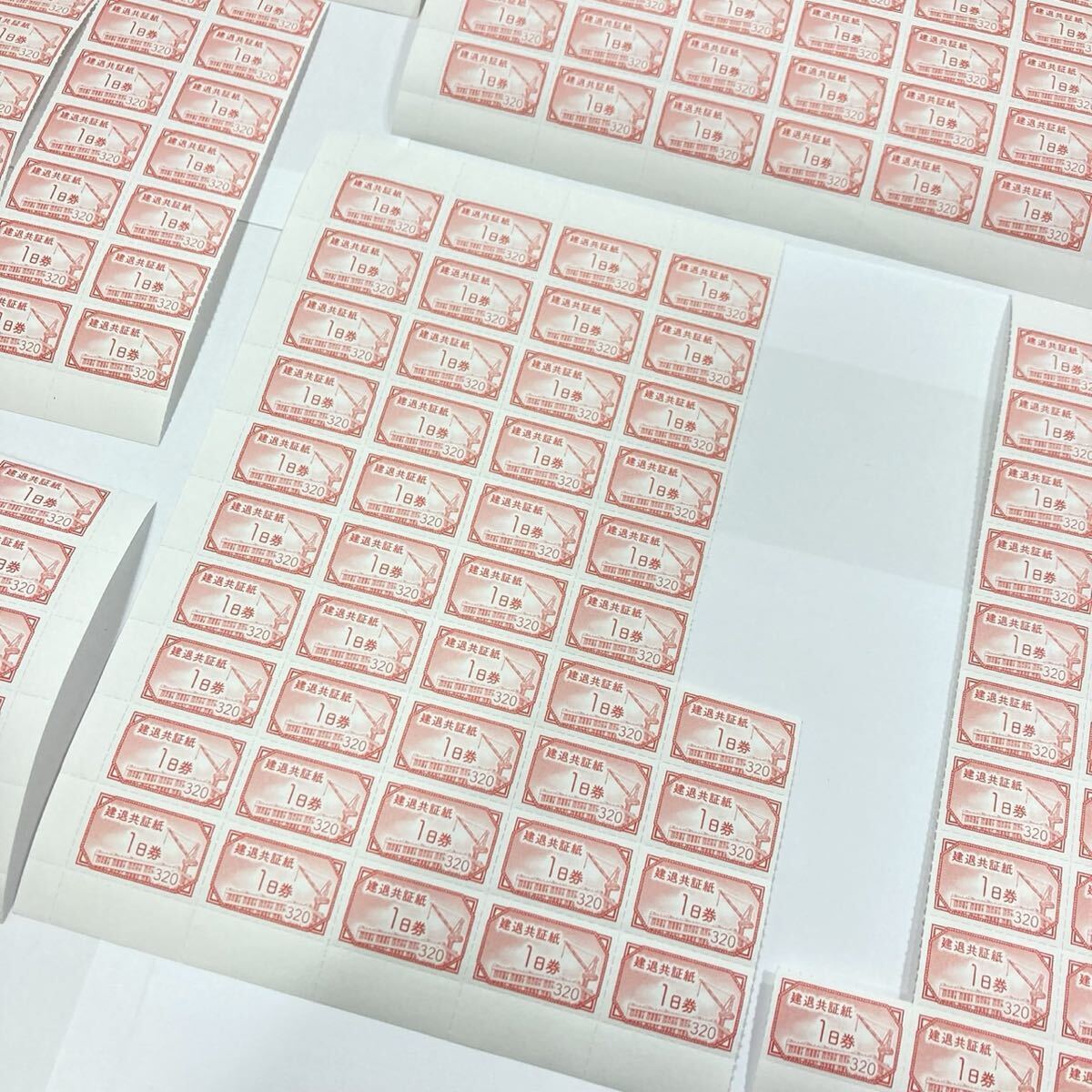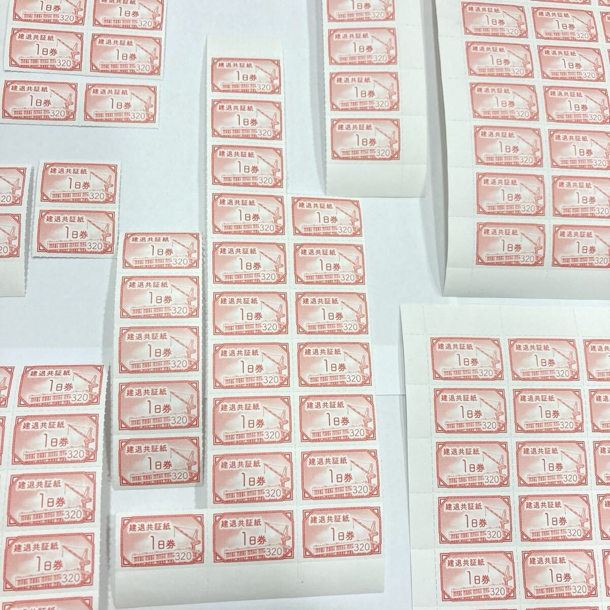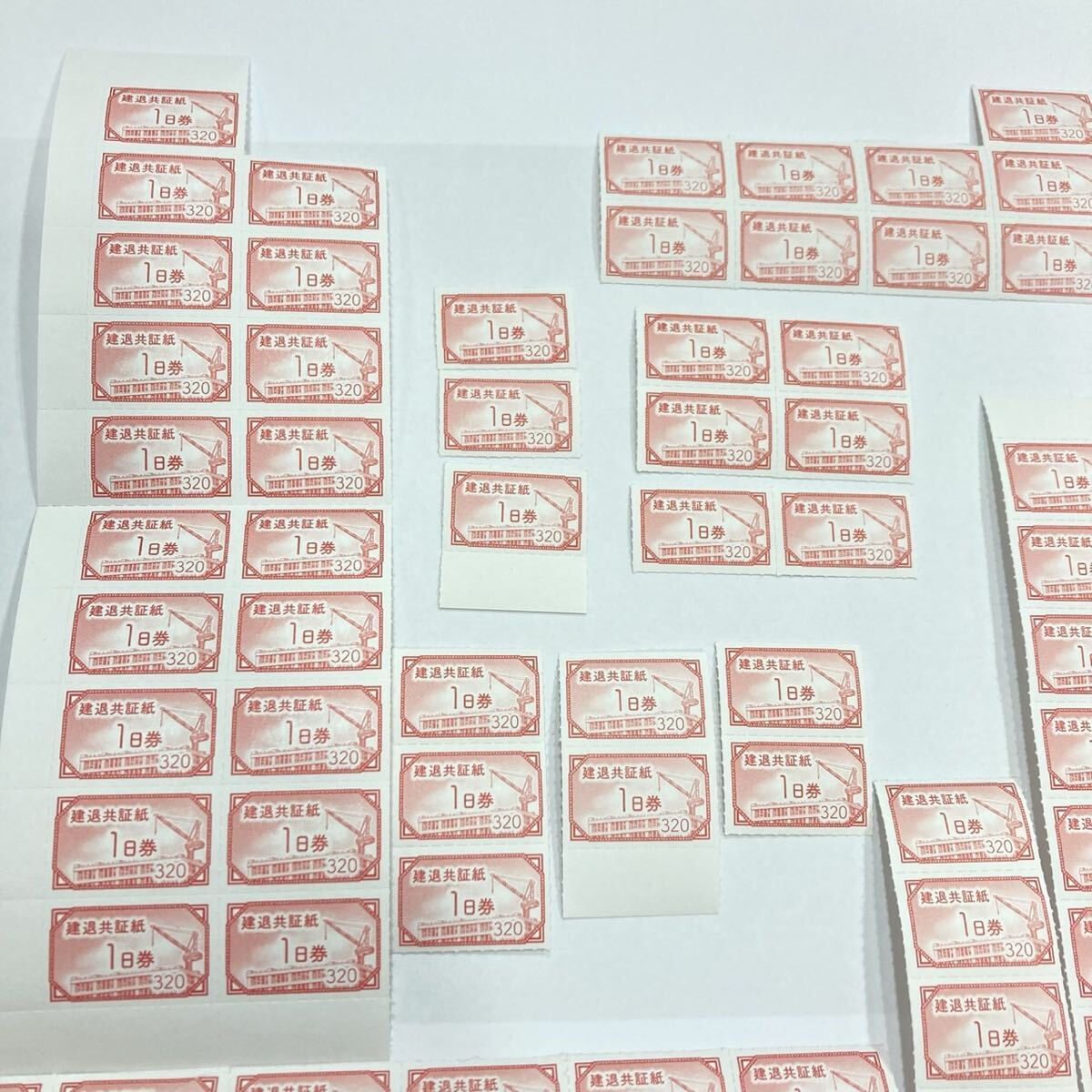 TE★1円〜未使用品 建退共証紙 赤証紙 建設業退職金共済証紙 バラ 1日券 320円 × 311枚 合計額面99,520円 おまとめ