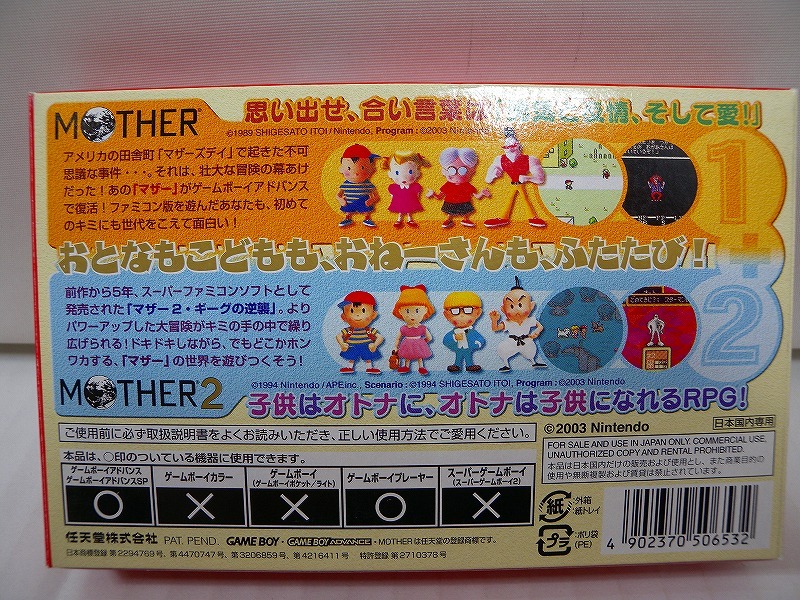 | HK7437★GBA ゲームボーイアドバンス ゲームソフト MOTHER 1+2 箱入 | |