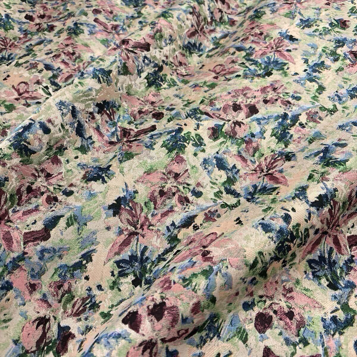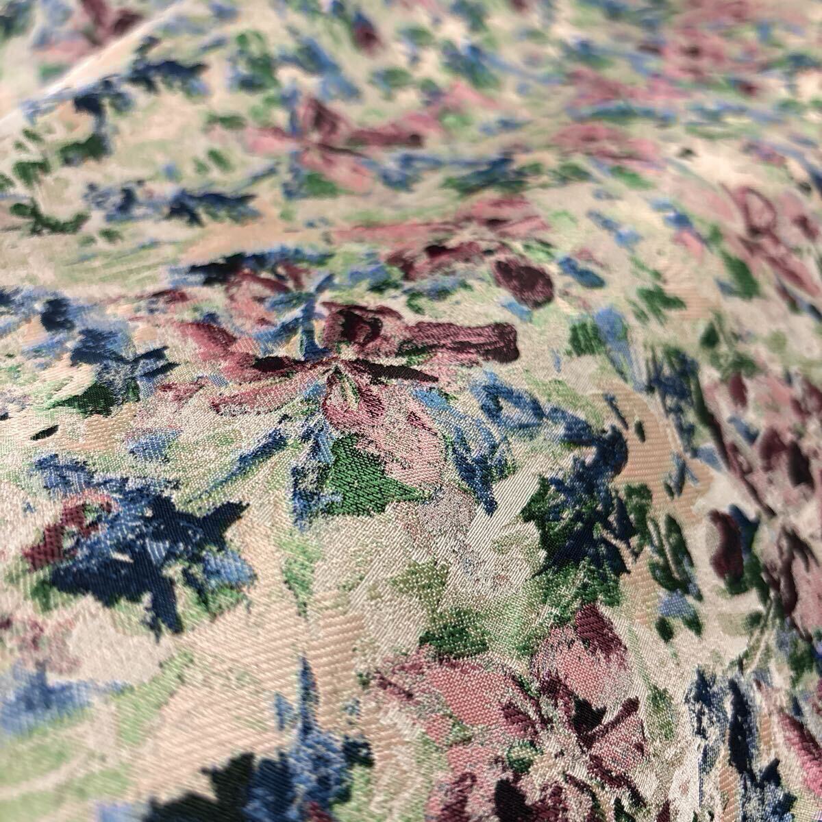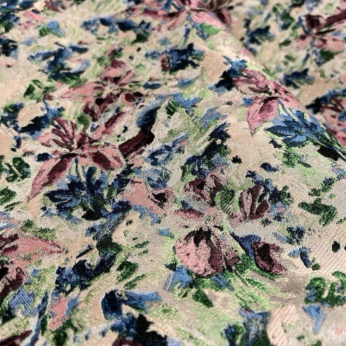 油絵の様なタッチの柄が織で表され、また、織でわずかな光沢も生まれ、立体的。