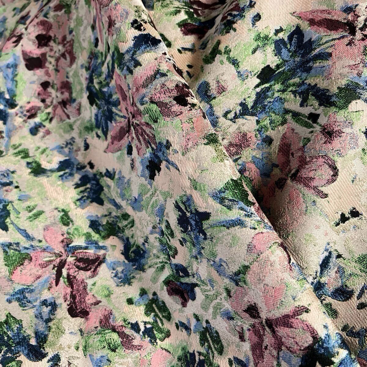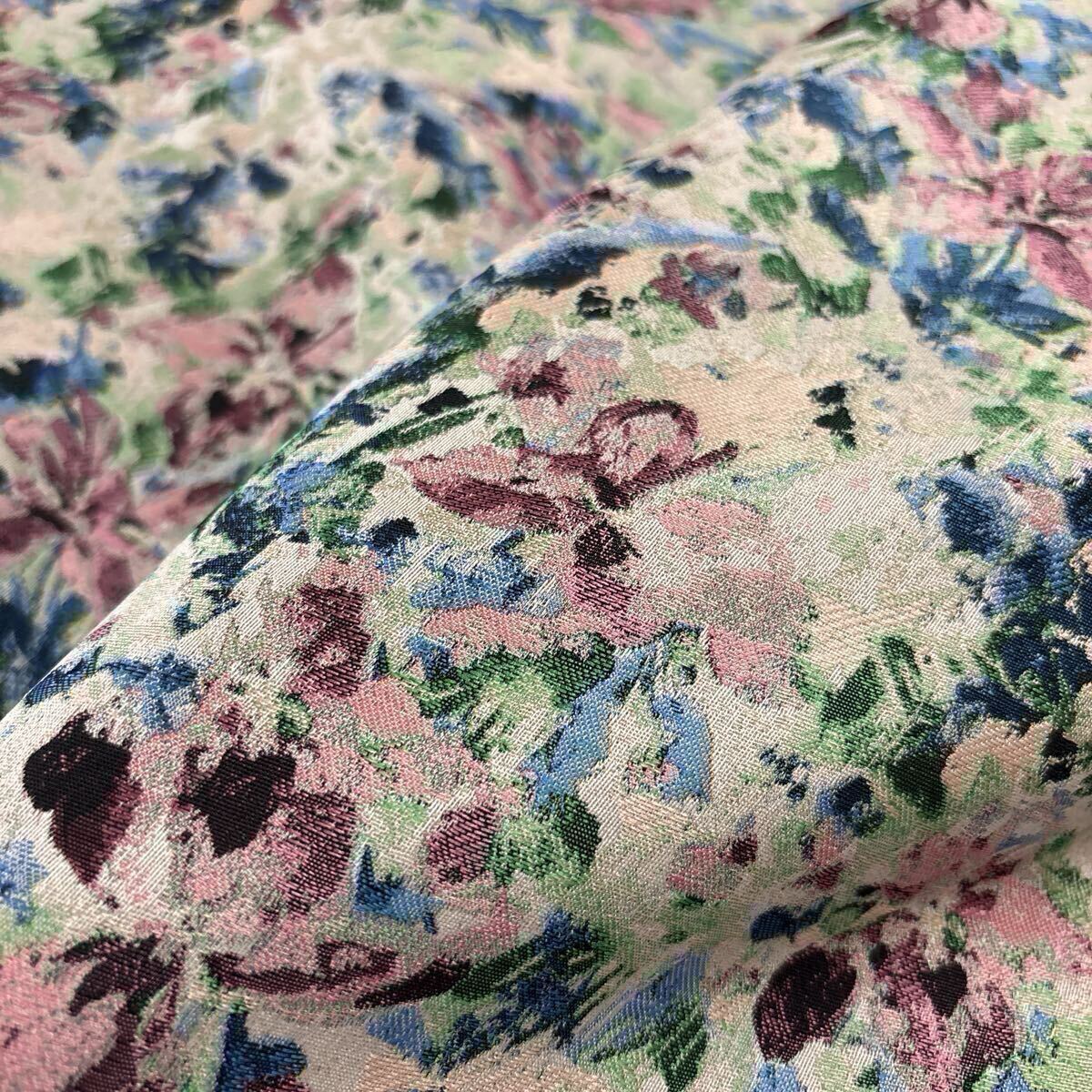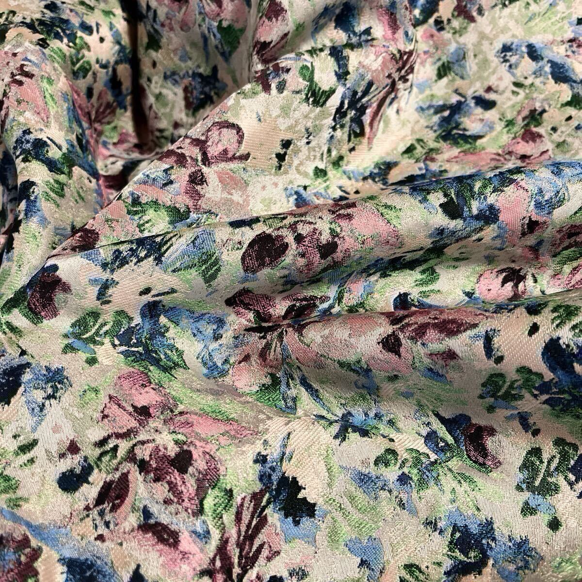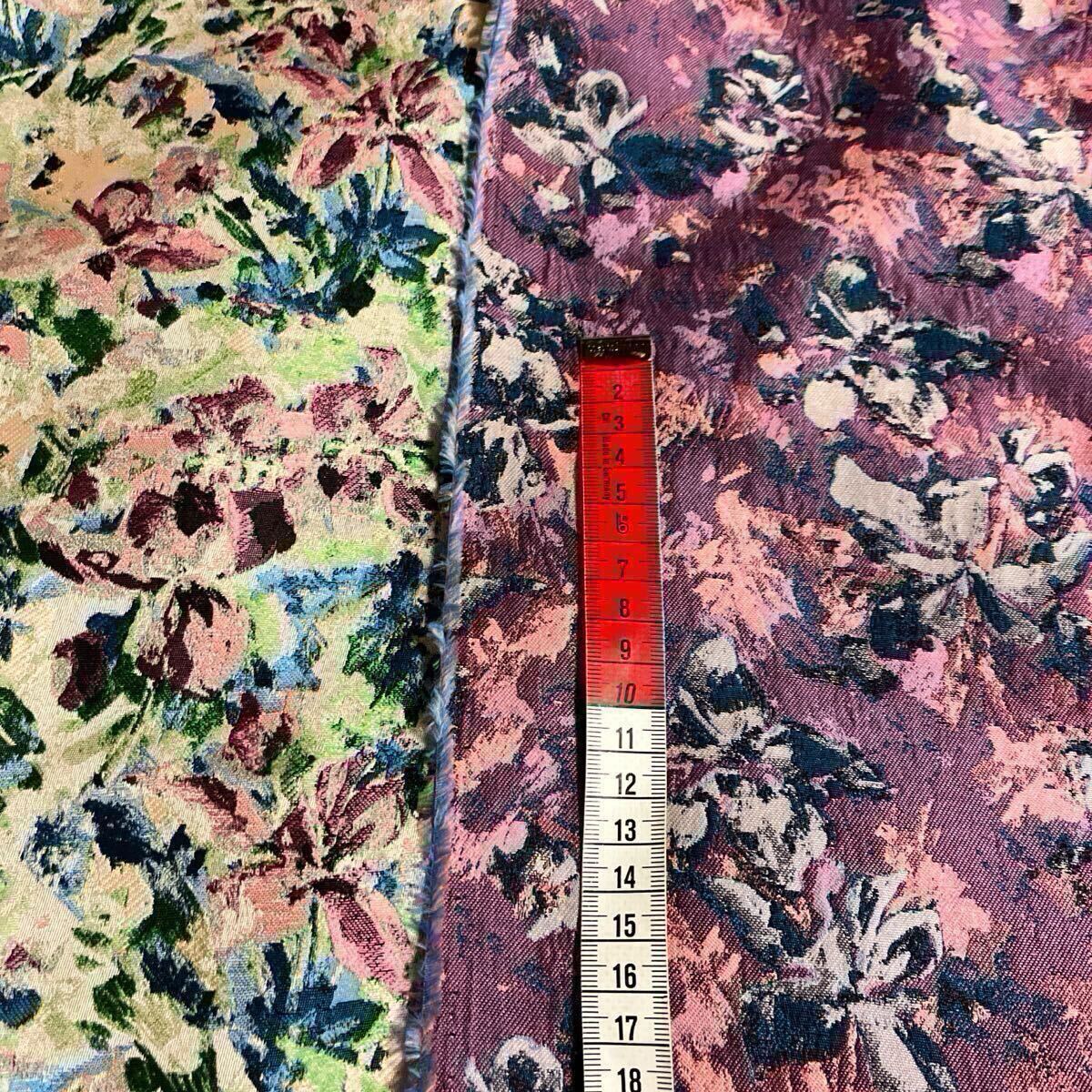 油絵の様なタッチの柄が織で表され、また、織でわずかな光沢も生まれ、立体的。