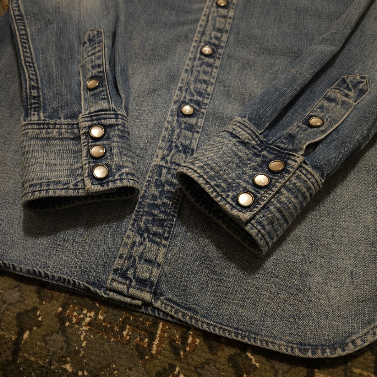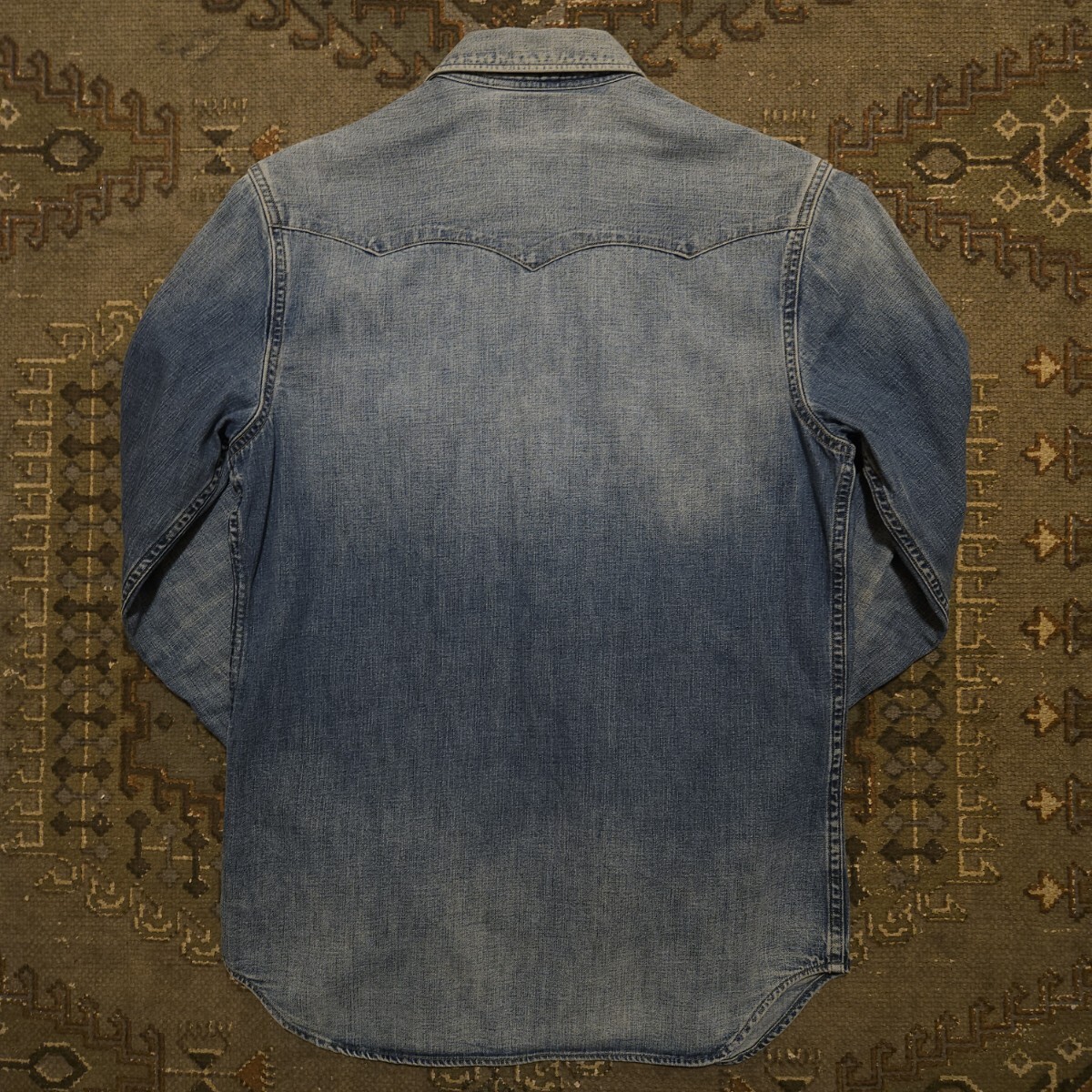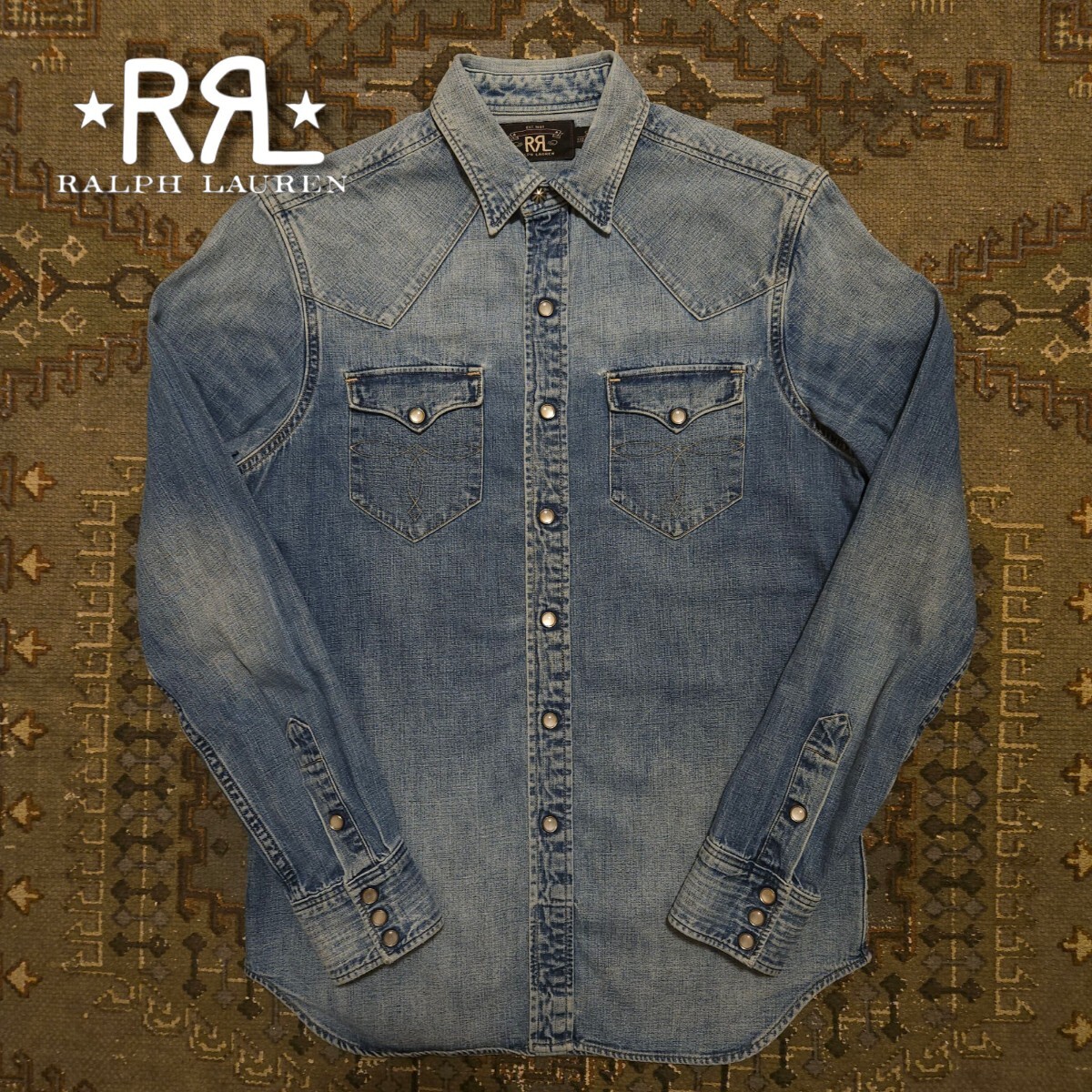【名作品】RRL INDIGO DENIM WESTERN SHIRT【S】インディゴ デニム ウエスタン シャツ バッファロー 職人藍染 ディストレスト RALPH LAURE