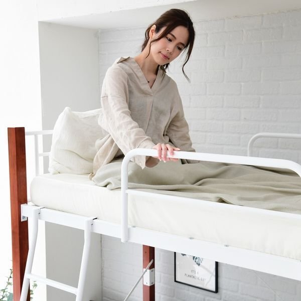【カラー】 ブラック×ブラウン、ホワイト×ブラウン、ホワイト×ナチュラル、ブラック×ナチュラル 【サイズ】 <外寸> 幅102.5×奥行209×高さ183cm <内寸> (共通) 床面:幅97×奥行197.5cm サイドガード:幅73×高さ30.5cm (ミドルタイプ) 床面高さ:高さ61cm 床面下:幅94.5×奥行195.5×高さ53cm (ロフトタイプ) 床面高さ:高さ148cm 床面下:幅94.5×奥行195.5×高さ140cm はしご出幅:34cm 【材質】 フレーム:スチール(粉体塗装) 支柱:ラバーウッド(ラッカー塗装) 【耐荷重】 床面:120kg以下 【生産国】 マレーシア 【梱包】3梱包でお届けします。 3-1 サイズ:103×40×14.5cm、重量:23.5kg 3-2 サイズ:95.5×46×16cm、重量:13kg 3-3 サイズ:92.5×40.5×14cm、重量:13.5kg 【その他】 ・ミドル/ロフト組み替え可能 ・六角レンチ、スパナ同梱 ・支柱は天然木を使用しているため、商品によって色味や木目などの風合いが異なります。 【組み立て品】 お客様による組み立てが必要です。 【ご注意】 ・サイズ、重量は概算です。 ・商品カラーはご使用のモニターによって実際の明るさや色と異なって見える場合がございます。 |
