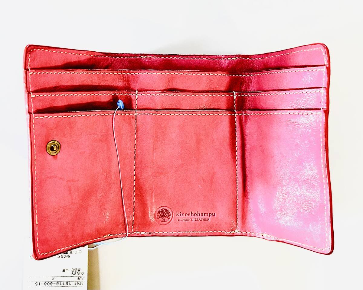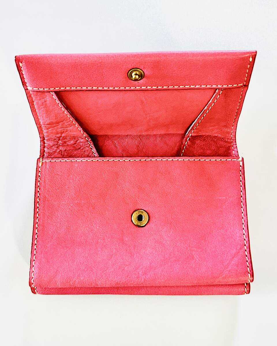 木の庄帆布(kinoshohampu)「三つ折りレザーウォレット(COLOR: PINK)」となります。