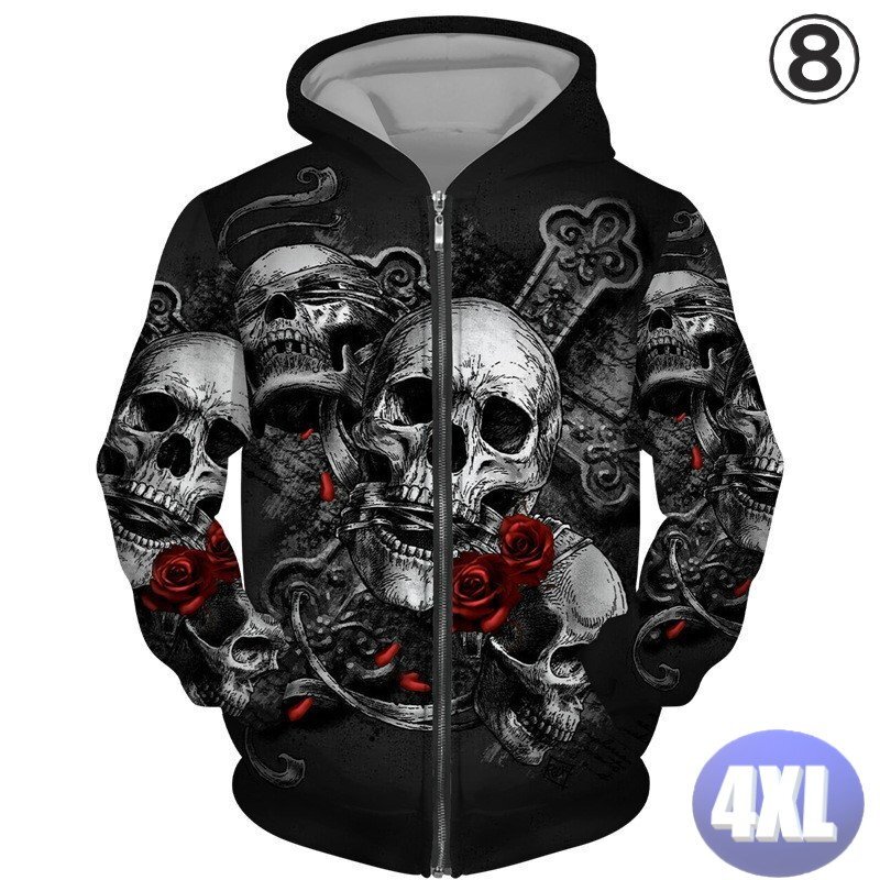 フード付き ドクロパーカー ジップアップ カラー8 4XL トレーナー アウター 防寒 n717