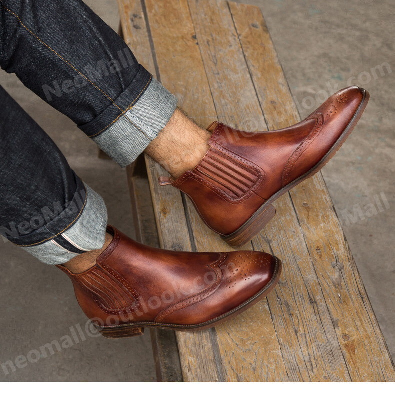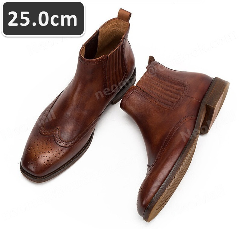 送料込☆ 本革 牛革 メンズ ショートブーツ ブラウン サイズ 25.0cm 革靴 靴 カジュアル 屈曲性 通勤 軽量 インポート品【n054】