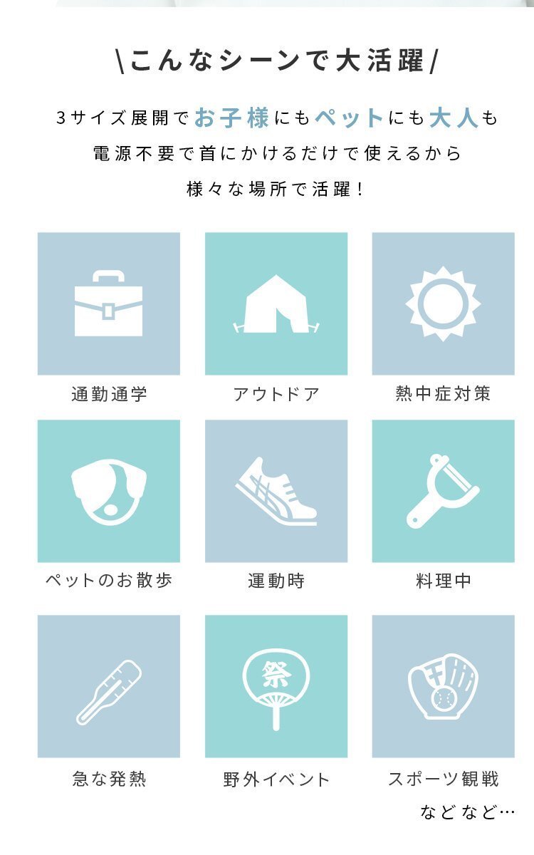 | \ 暑い夏もコレがあれば快適!アイスネックリング / 首にかけるだけ!超軽量なので疲れにくい! エコ!省エネ!!節電!!! 電池不要で繰り返し何度も使えます。 話題の新素材「PCM」採用。 融点が28℃と高く、冷水にさらすだけでも凝固し 凍ったまま使用しても冷えすぎず、ひんやりがずーっと長持ちします! 結露しないので首や服が濡れない&そのままカバンに入れて持ち歩きOK! 外観はしなやかで破れにくいTPUチューブ。 万が一、汚れてしまっても水で丸洗い可能です!! お出かけや通勤・通学、スポーツ、アウトドア、屋外作業時など様々なシーンで大活躍です♪ 【商品詳細】 カラー:無地/ライトグレー サイズ :Sサイズ 重量 (約):画像詳細参照 素材:PCM、TPU 【注意事項】 ・当商品はゆうパケットにて配送になり、ポスト投函となります(日時&時間指定・代引き不可) ・仕様/デザインは改良のため予告なく変更することがあります (アイスネックバンド スマートアイス 爽快リング リング 首元 首かけ 冷たい 冷やし クール 涼感 涼しい 冷感グッズ 保冷剤 28度 軽量 子供 ゴルフ 野球 キッズ 犬 運動 ウォーキング 散歩 おしゃれ 送料無料) |