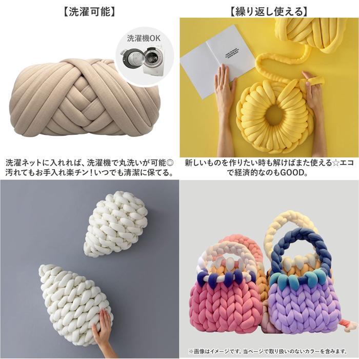 | 商品説明 | ・・【洗える専用毛糸】 ・チャンキーニットにぴったり♪洗える専用毛糸が新発売。(500g) ・【チャンキーニットとは】 ・極太の毛糸を道具いらずで編み込むことができ誰でも手軽にハンドメイドが楽しめる◎ ・【オールシーズン対応】 ・サラッとした手触りのポリエステル生地でオールシーズン使える。 ・【中綿入りでふっくらとした素材】 ・ふっくらと中綿が入った柔らかい生地感。カバンはもちろんシングル毛布の作成もオススメ♪ ・【クッションやペットのベッドも】 ・クッションやペットのベッドなど幅広く作れるのも嬉しいポイント。 ・【洗濯可能】 ・洗濯ネットに入れれば、洗濯機で丸洗いが可能◎汚れてもお手入れ楽チン!いつでも清潔に保てる。 ・【繰り返し使える】 ・新しいものを作りたい時も解けばまた使える☆エコで経済的なのもGOOD。 |