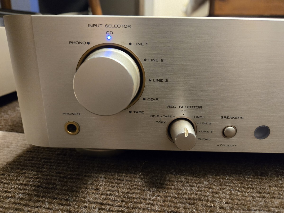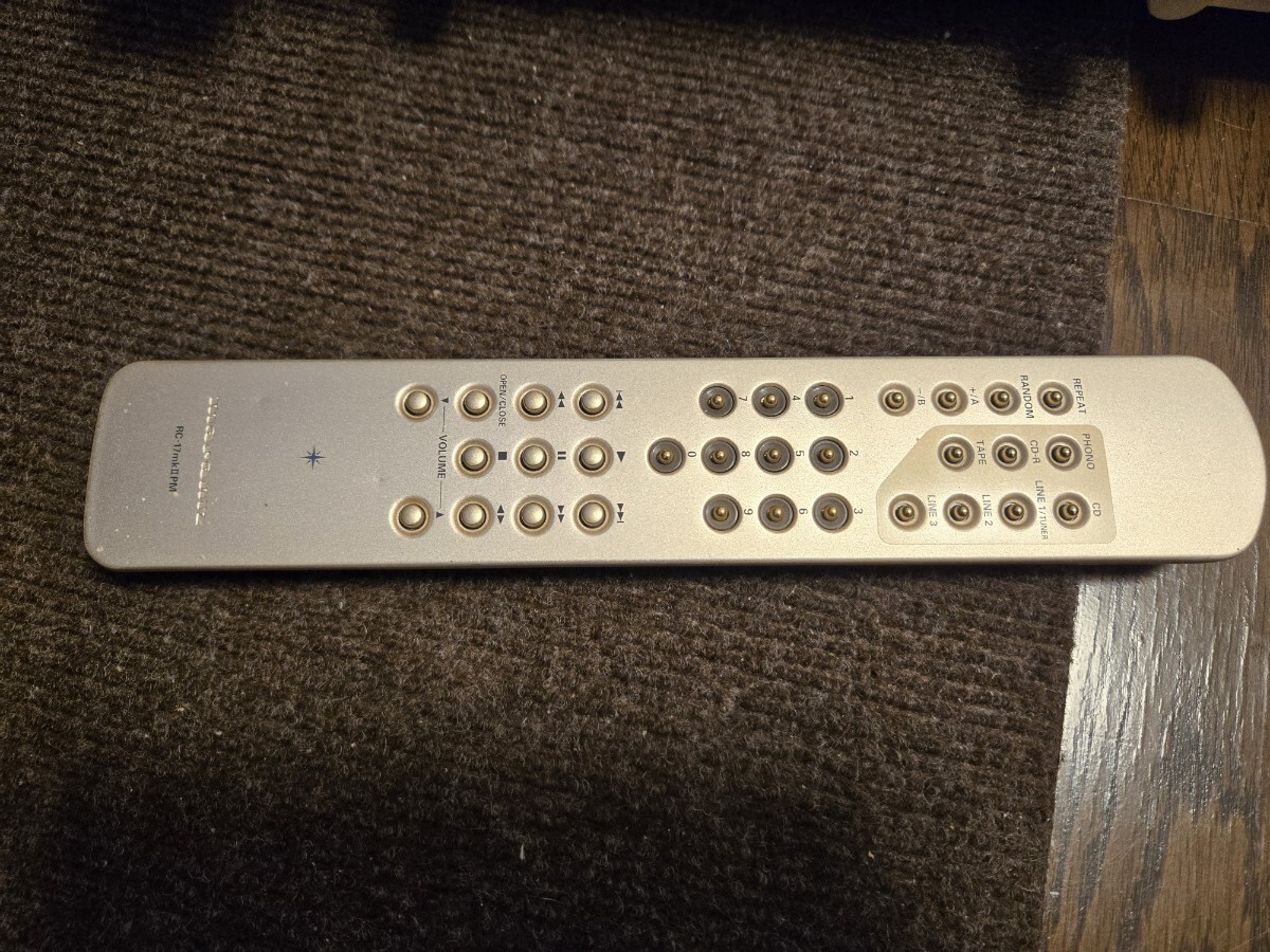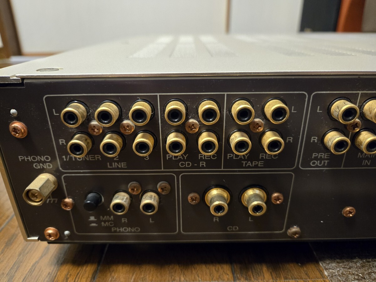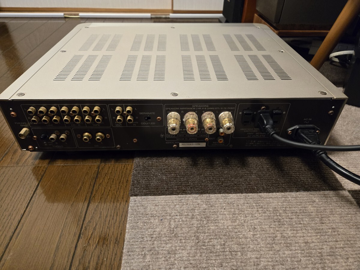 通電確認済みで外観もますまずです。ただ残念ながらCD入力から音出しを行いましたがノイズが出ます。その他の動作は未確認のジャンク品です。メンテナンスを行える方、部品取りの方以外はお勧めできません。その点を考慮して頂いて宜しくお願いします。付属品は電源ケーブル、リモコンです。