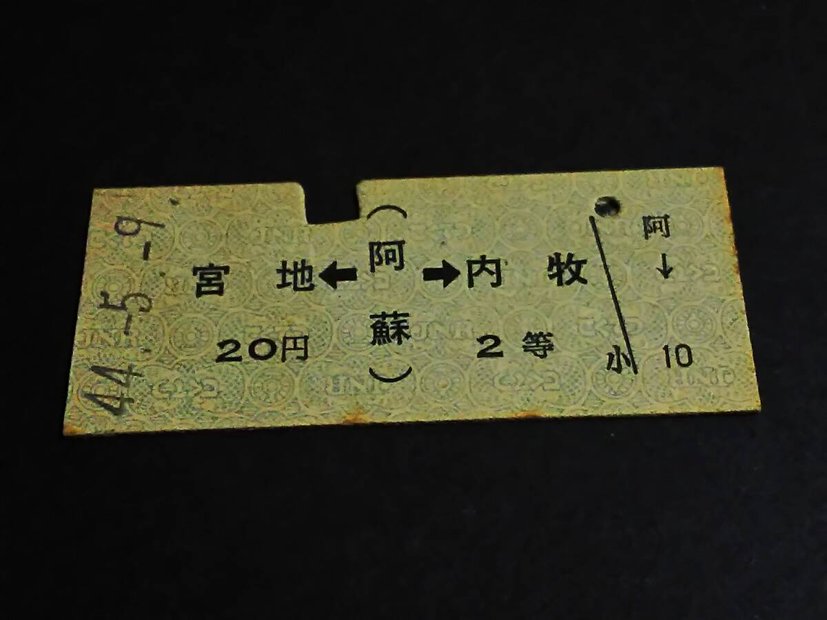 【両矢印式乗車券(2等/B型)】 ★豊肥本線(宮地←(阿蘇)→内牧)20円 S44.5.9
