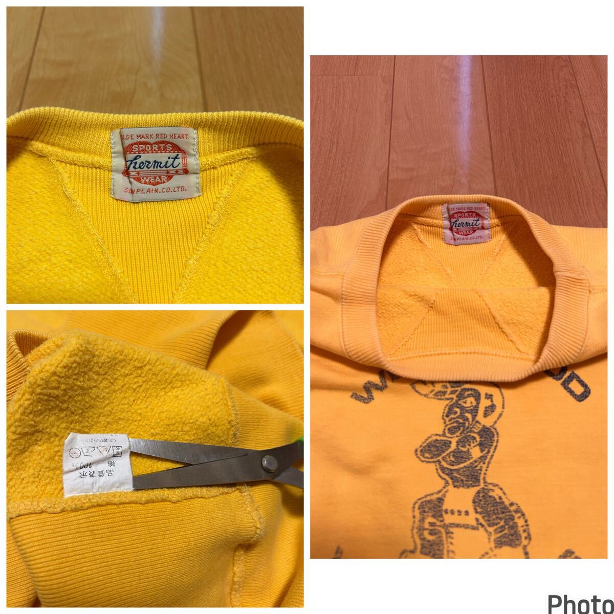 当時物.良品☆90sHERMIT SPORTSWEARハートタグ メンズサイズL並 裏起毛スウェットシャツ/ビンテージ復刻40s50s はめ込み両Vガゼット&長リブ
