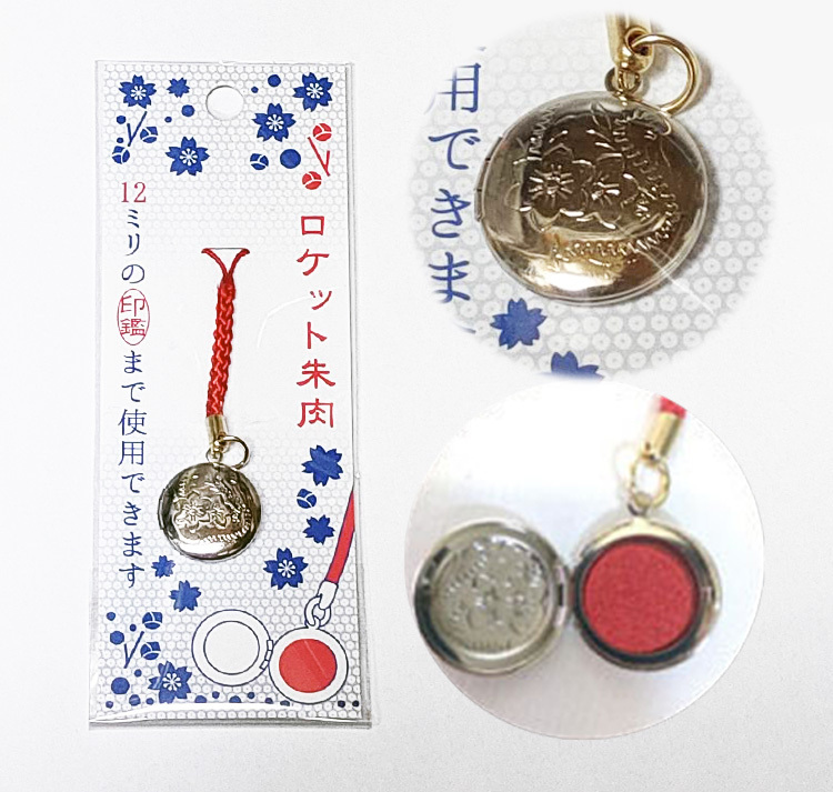 印鑑ケースやお財布に付けられる、携帯型の便利な朱肉です。