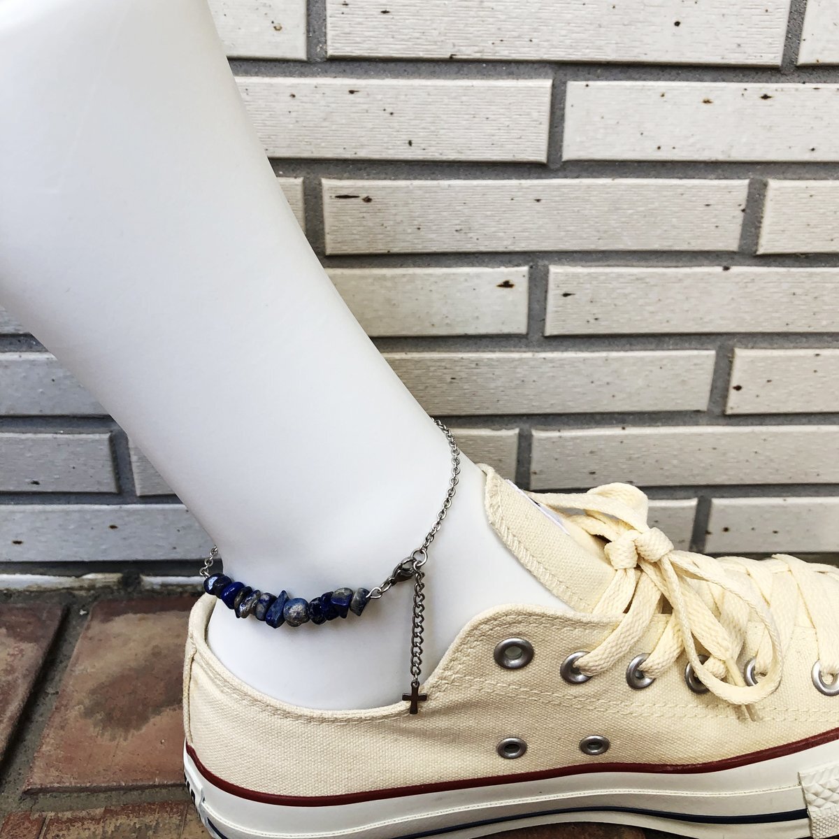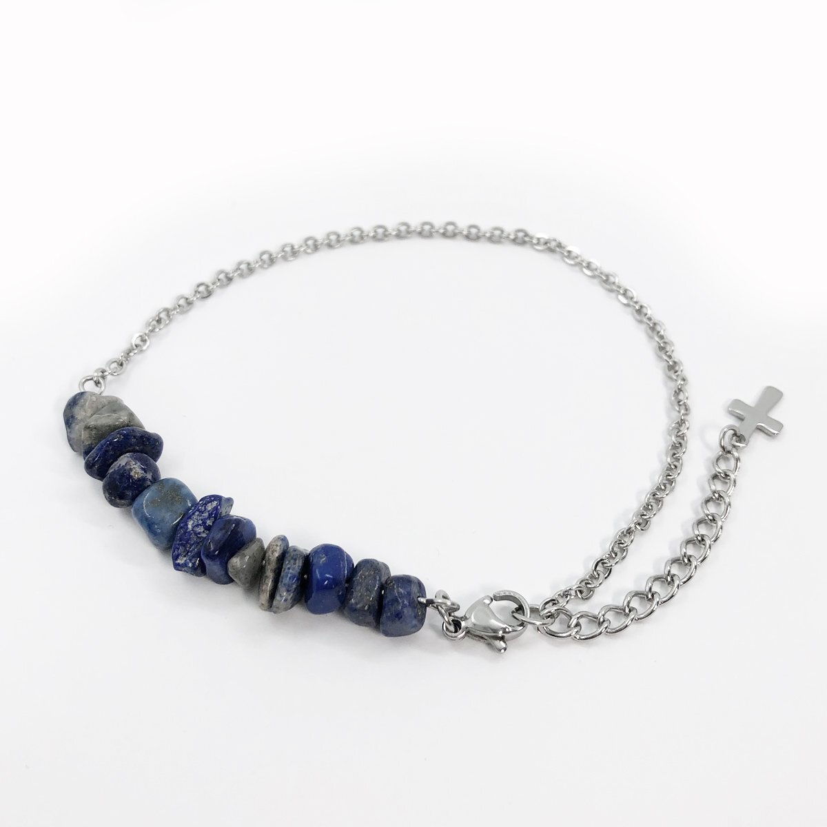 ステンレスチェーン アンクレット ラピスラズリ 平小豆チェーン幅約2.5mm  25cm(21cm+4cmアジャスター) GN37