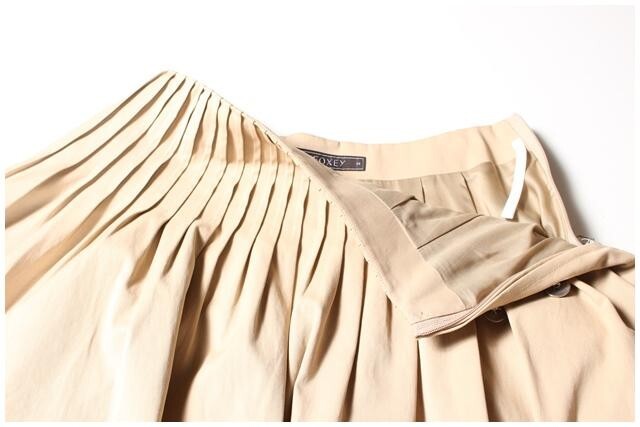 フォクシー FOXEY 27245 タック&タックスカート フレア ひざ丈 38 ベージュ /ka0516 レディース