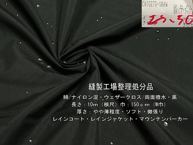 | 綿/ナイロン混 ウェザークロス 両面撥水 やや薄 ソフト 黒 10m | |