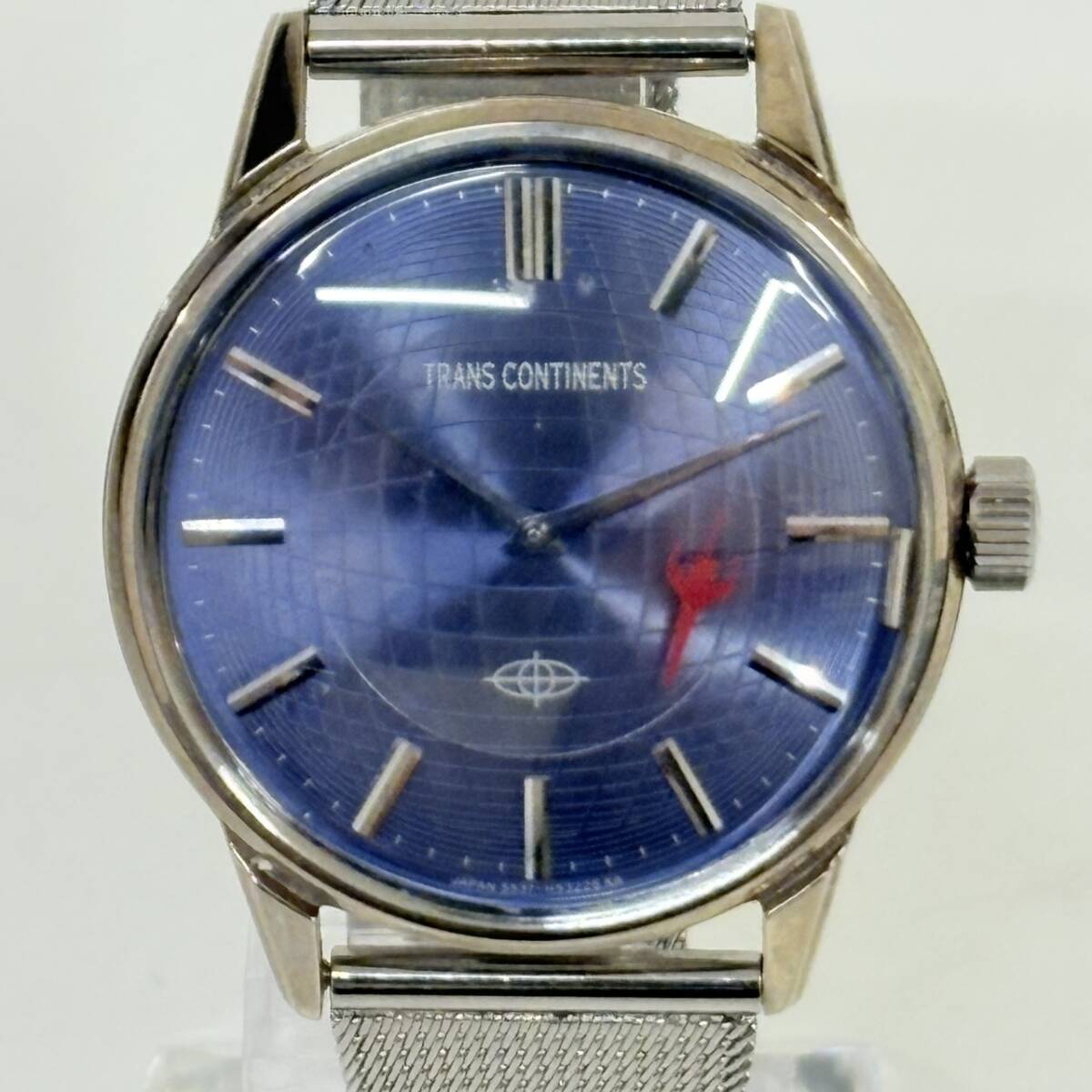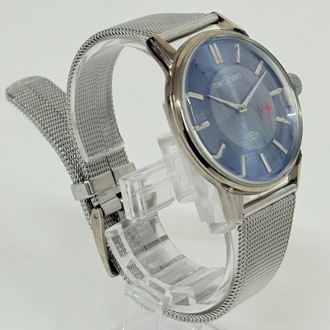トランスコンチネンツ TRANS CONTINENTS クォーツ 3針 5537-L15219 青文字盤 男性用 腕時計 メッシュブレス ジェット【1118-T】
