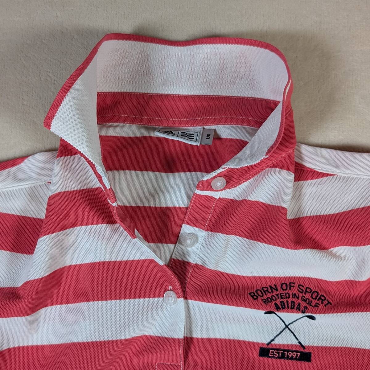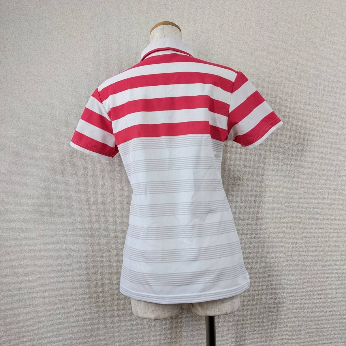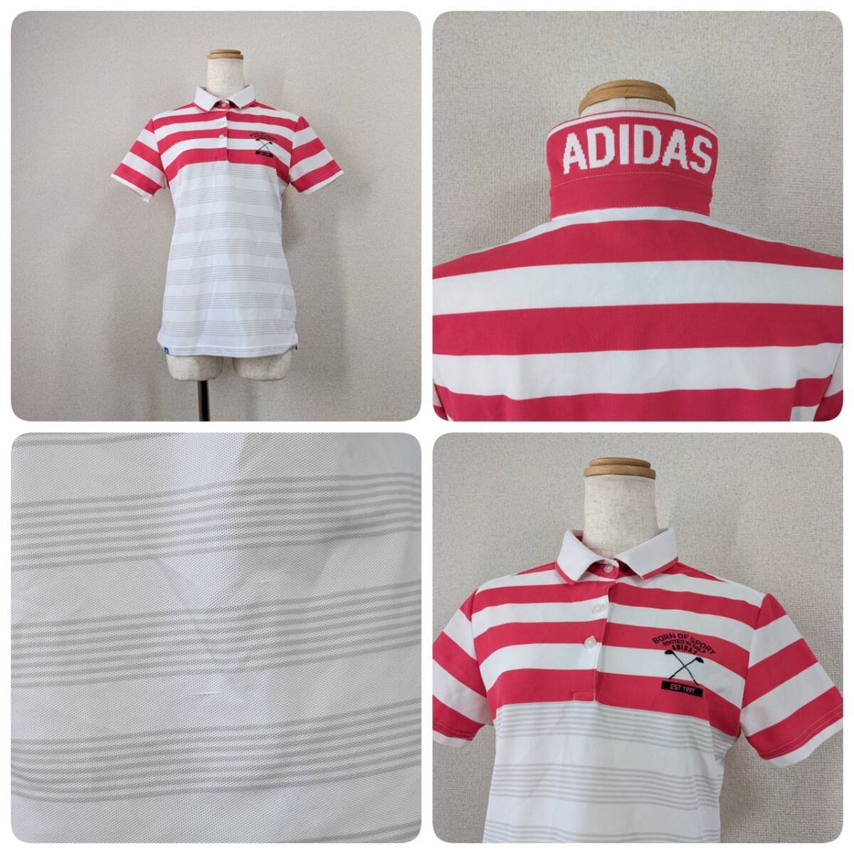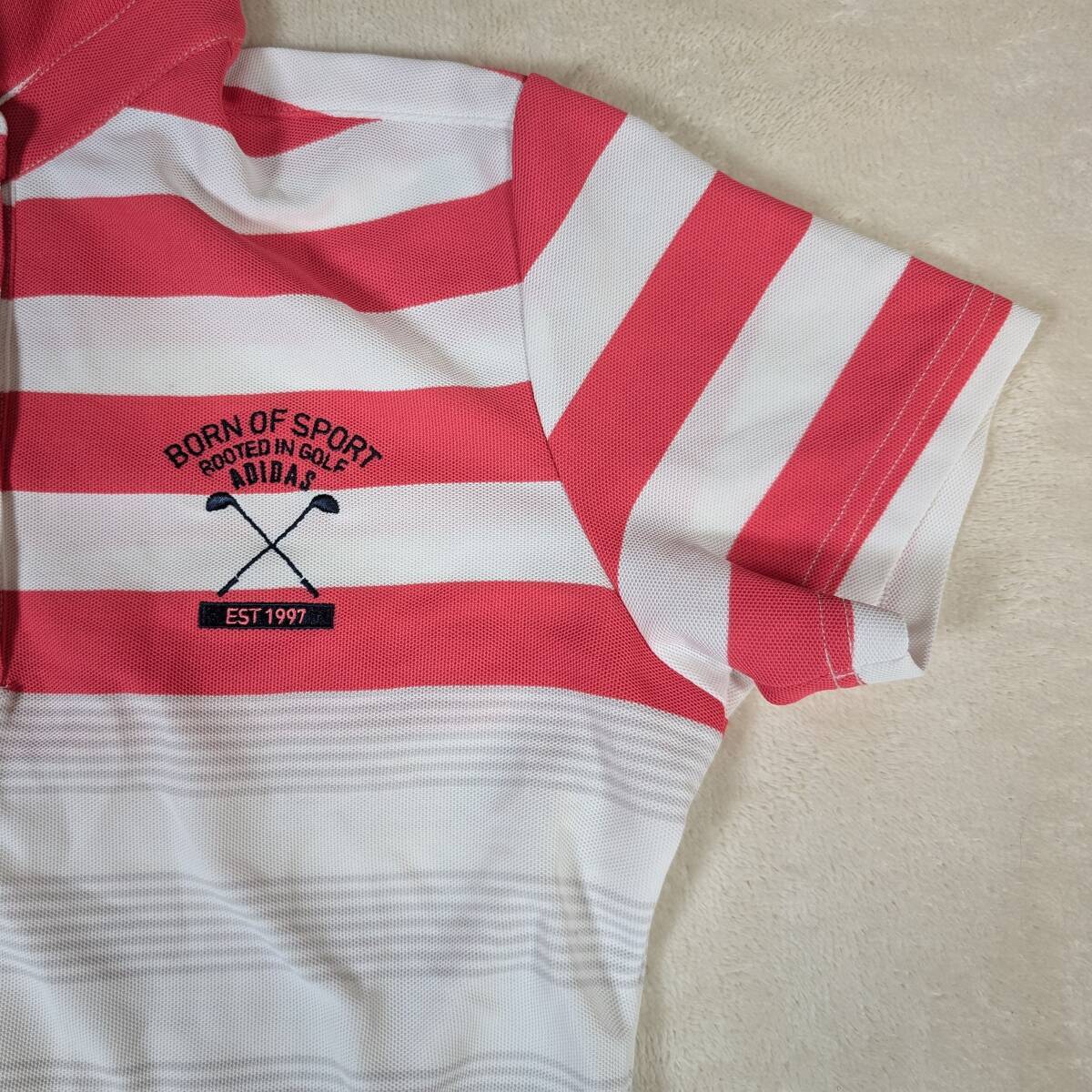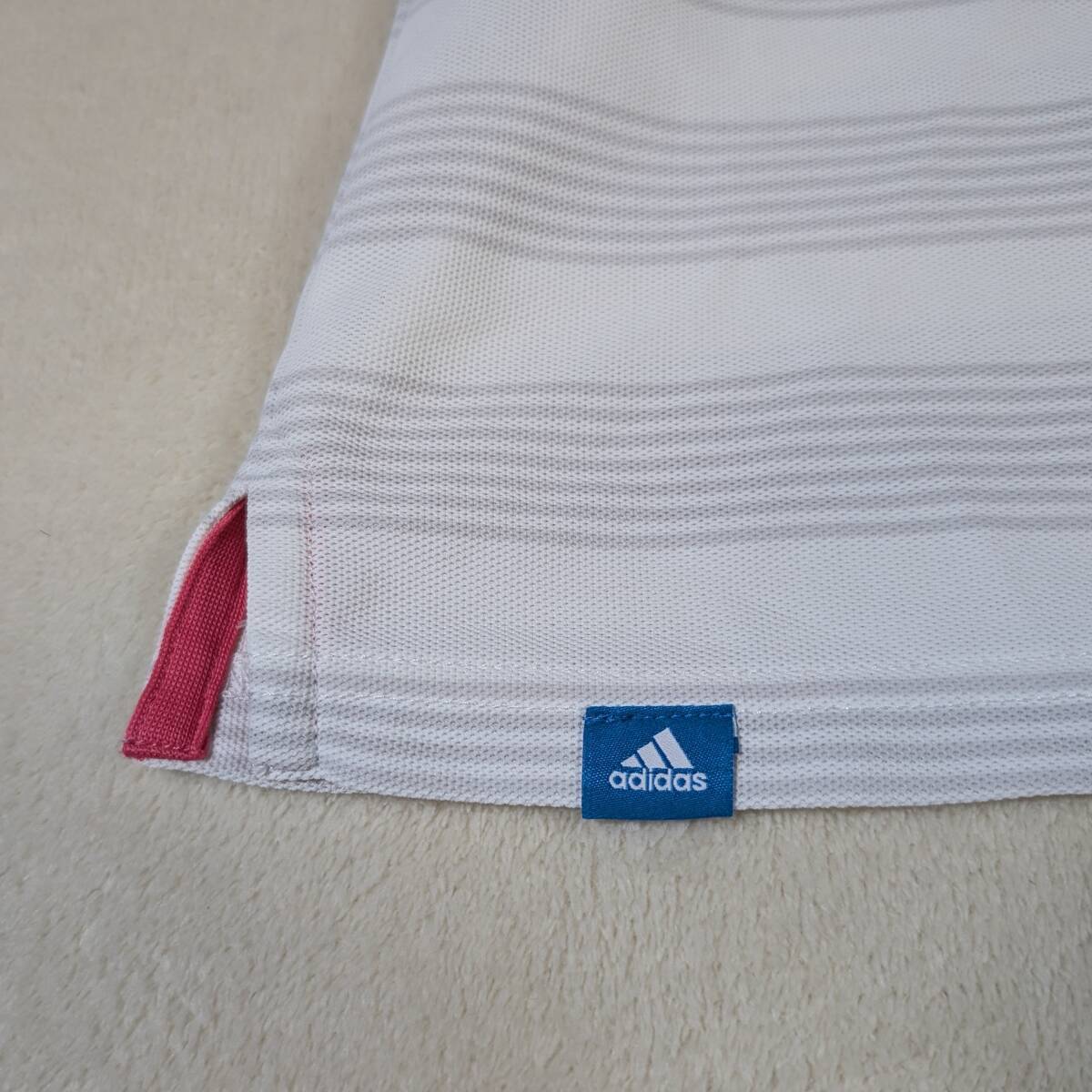 【アディダス】ゴルフウェア シャツ 白 ピンク ボーダー レディース L ワンポイント adidas
