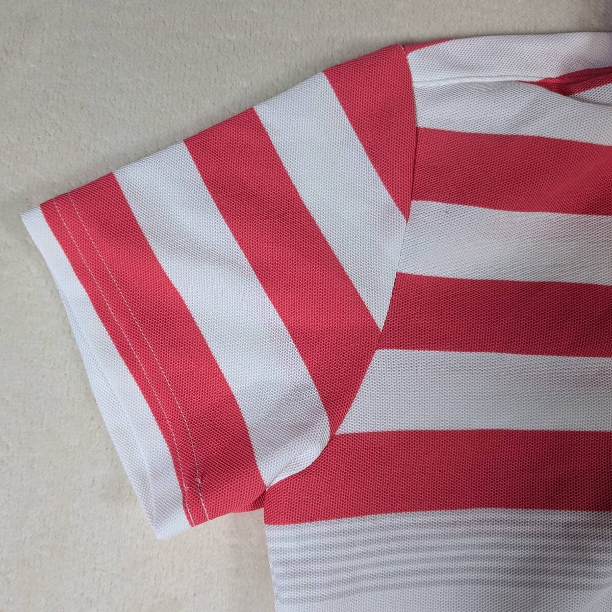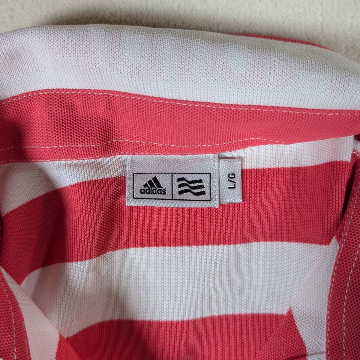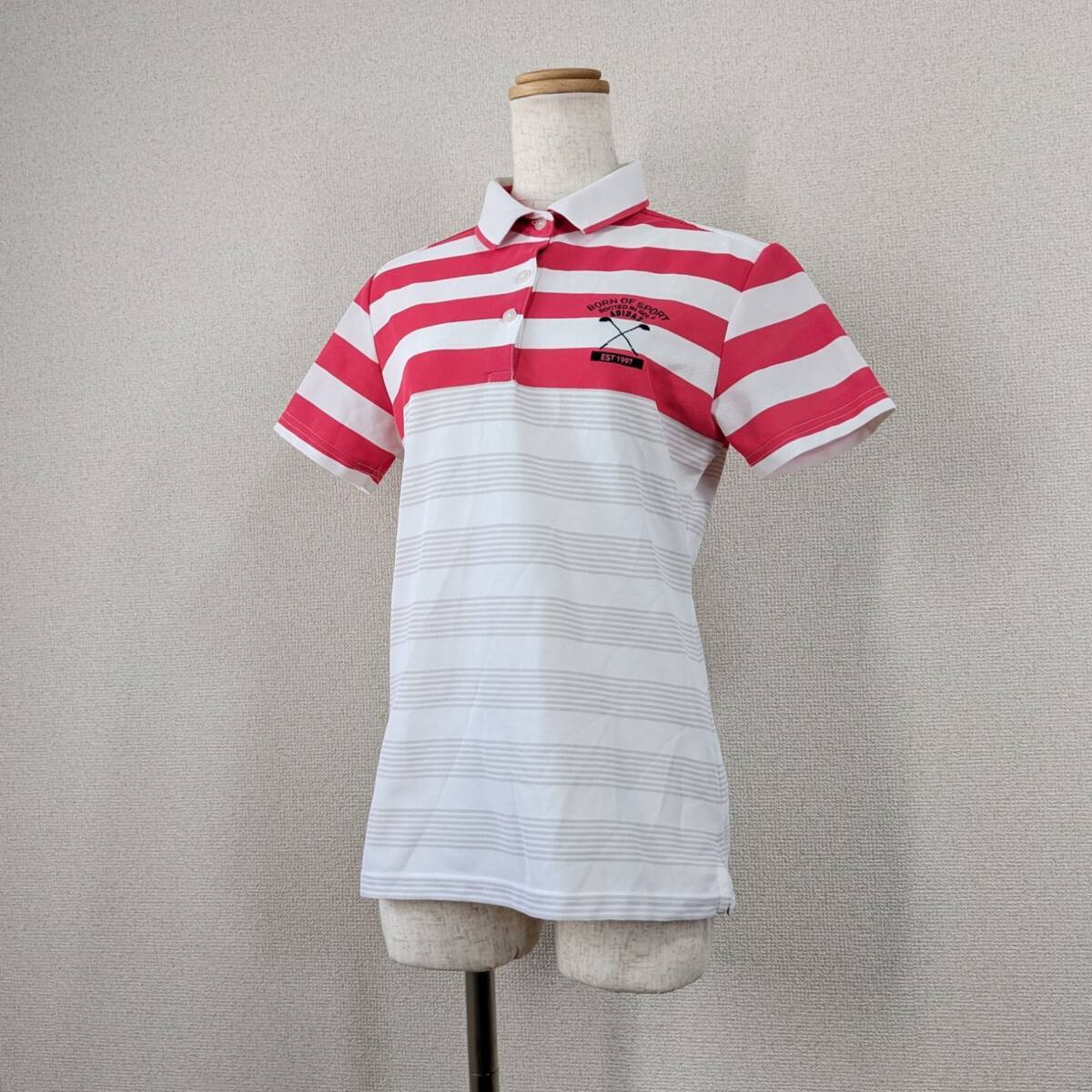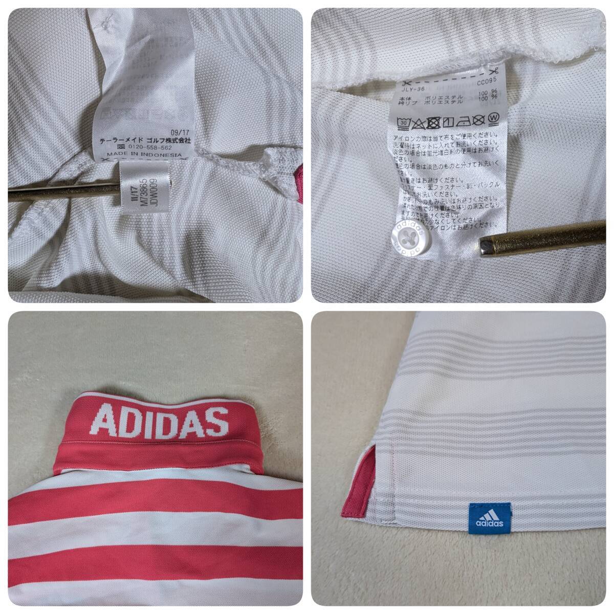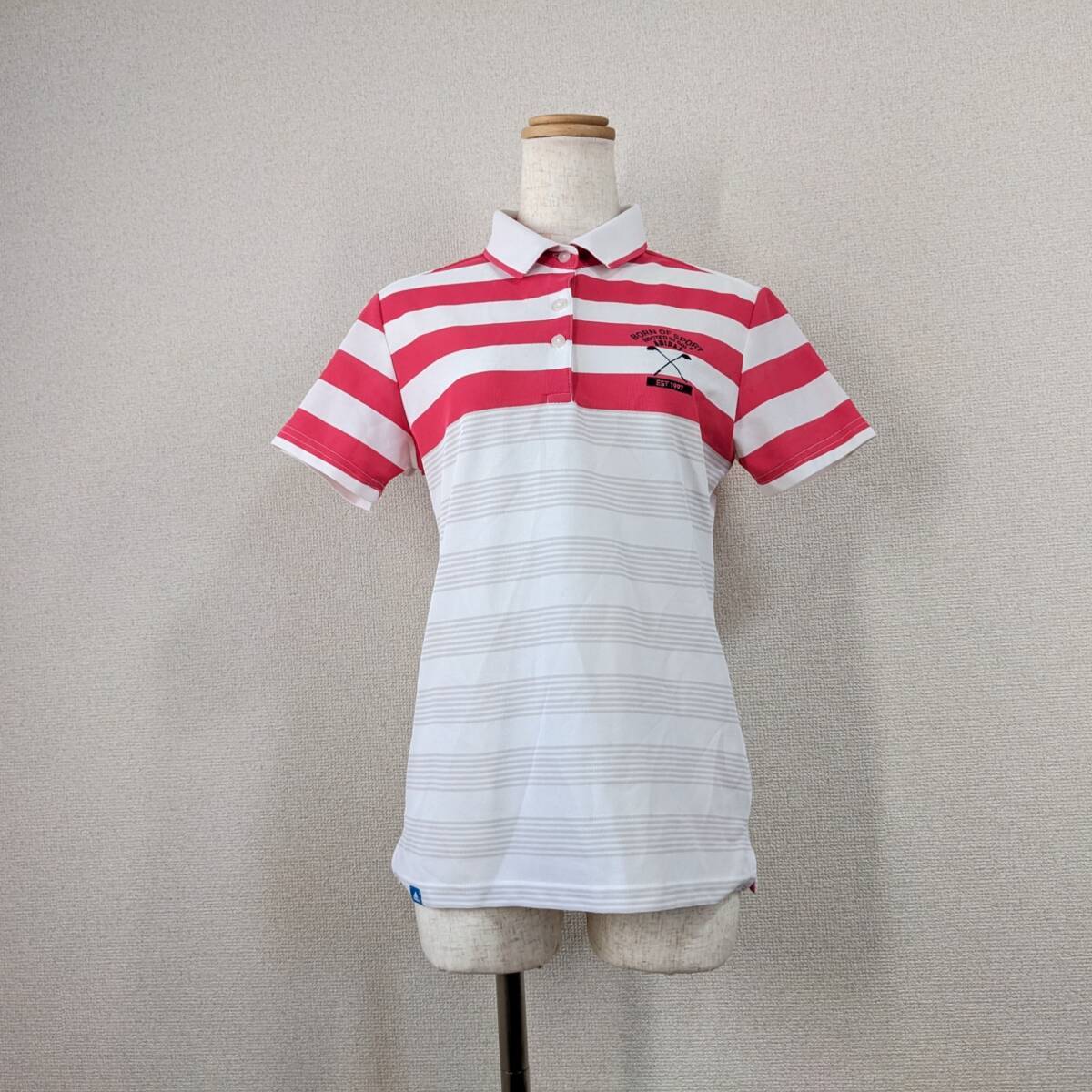 【アディダス】ゴルフウェア シャツ 白 ピンク ボーダー レディース L ワンポイント adidas
