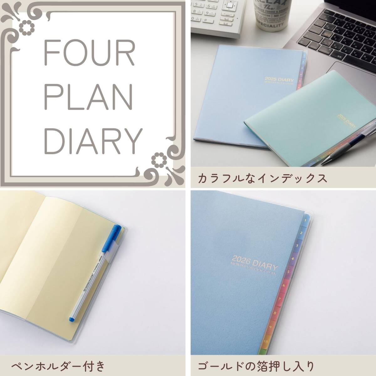 12月始まり 2025年 RFD2654M グリーン A5 マンスリー フォープランダイアリー スケジュール帳 2026 手帳 レ