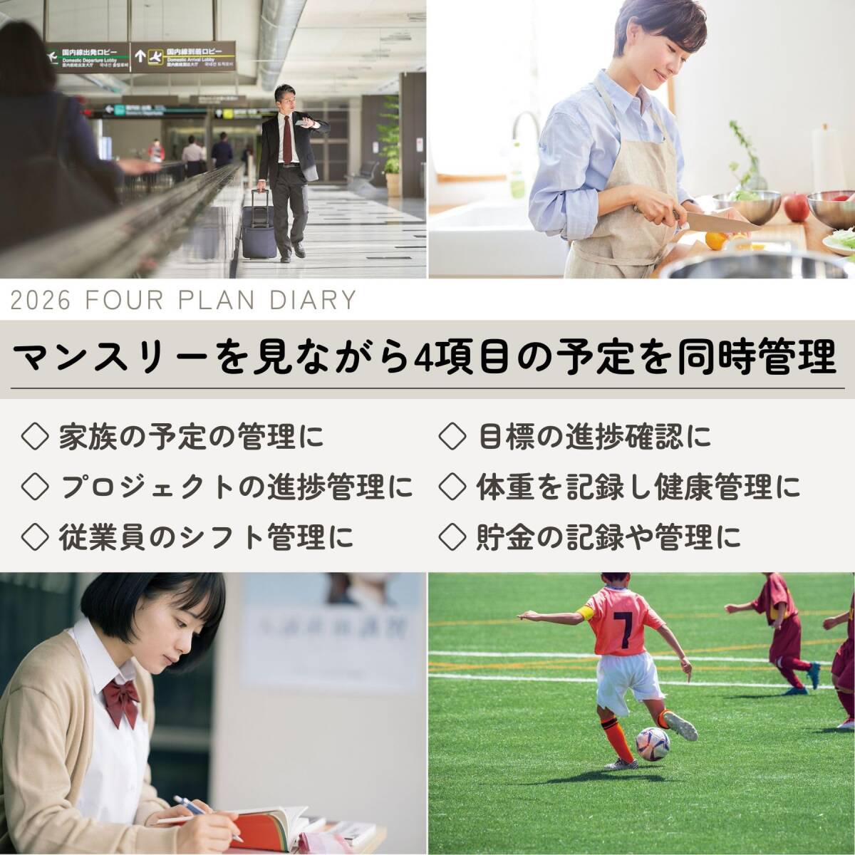 マンスリーを見ながら4項目の予定を同時に管理できるダイアリー