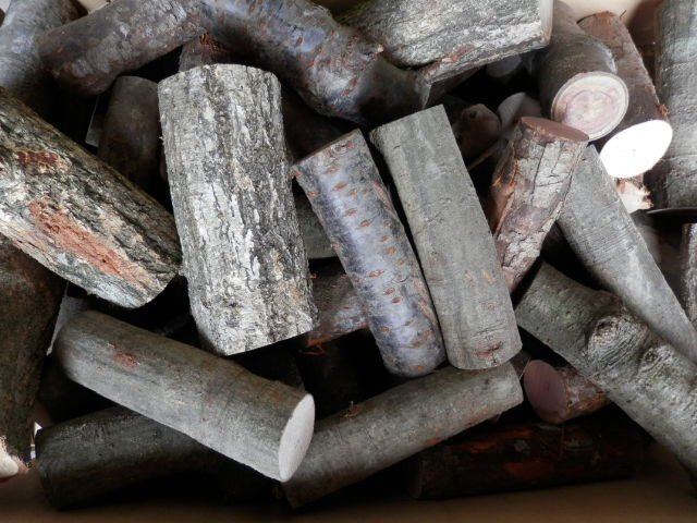 | 広葉樹全般≪0.60~0.95前後≫で火持ち、火力等もさまざまな約15cmカット丸棒薪です。 |