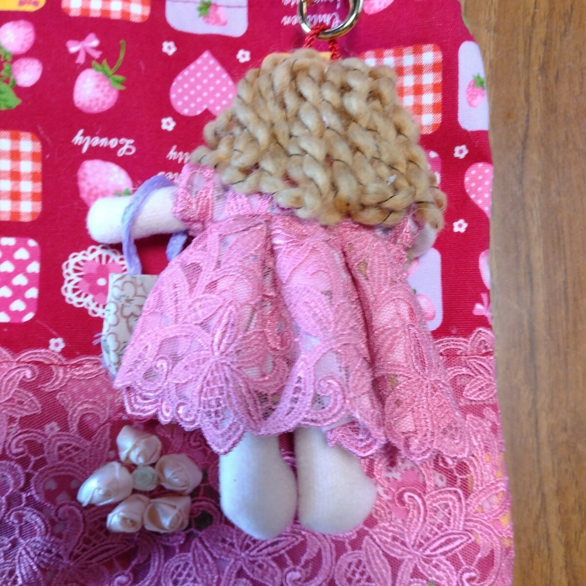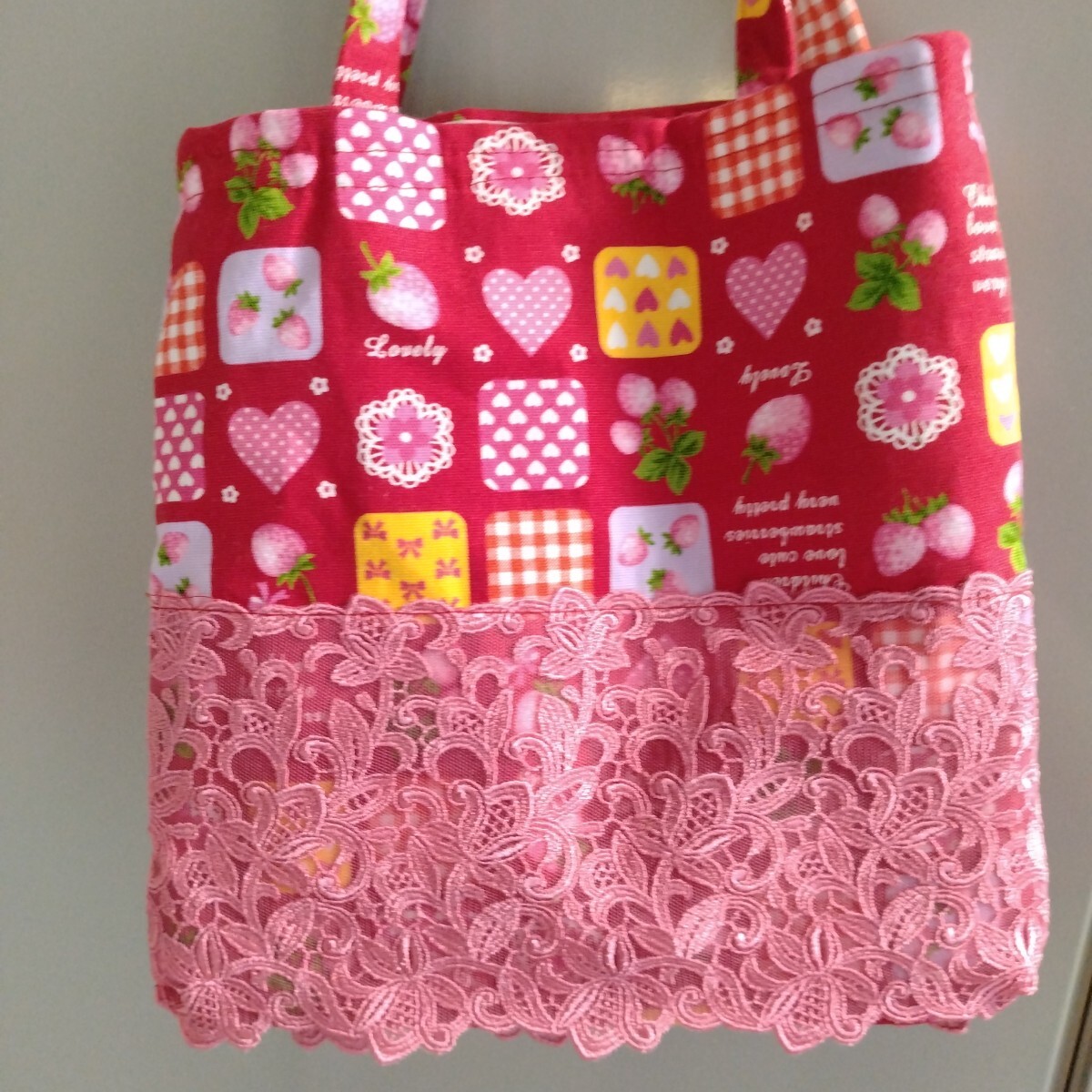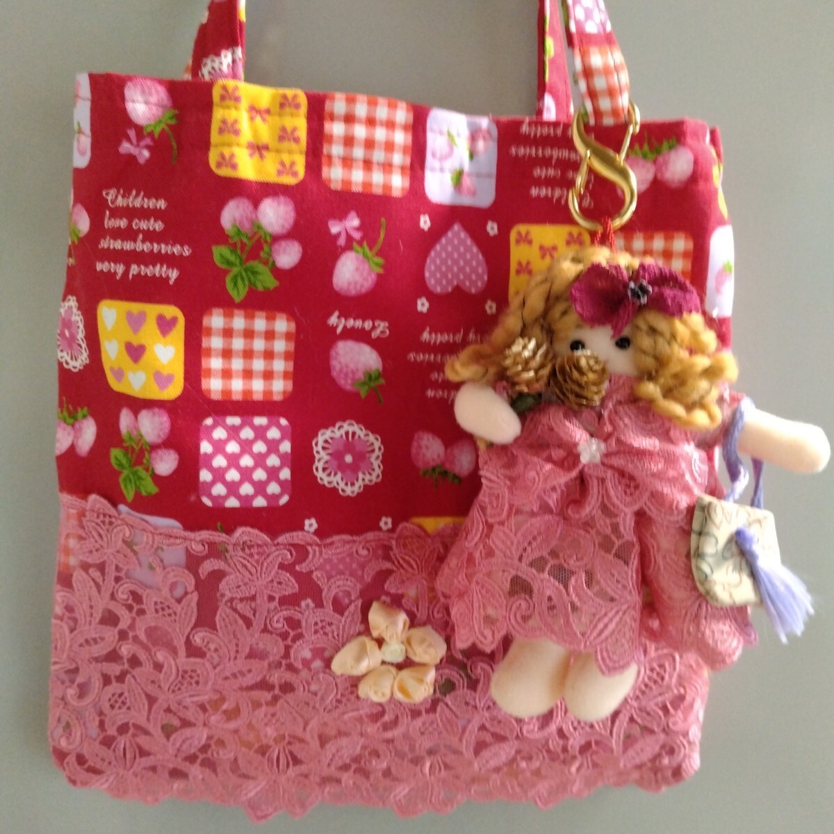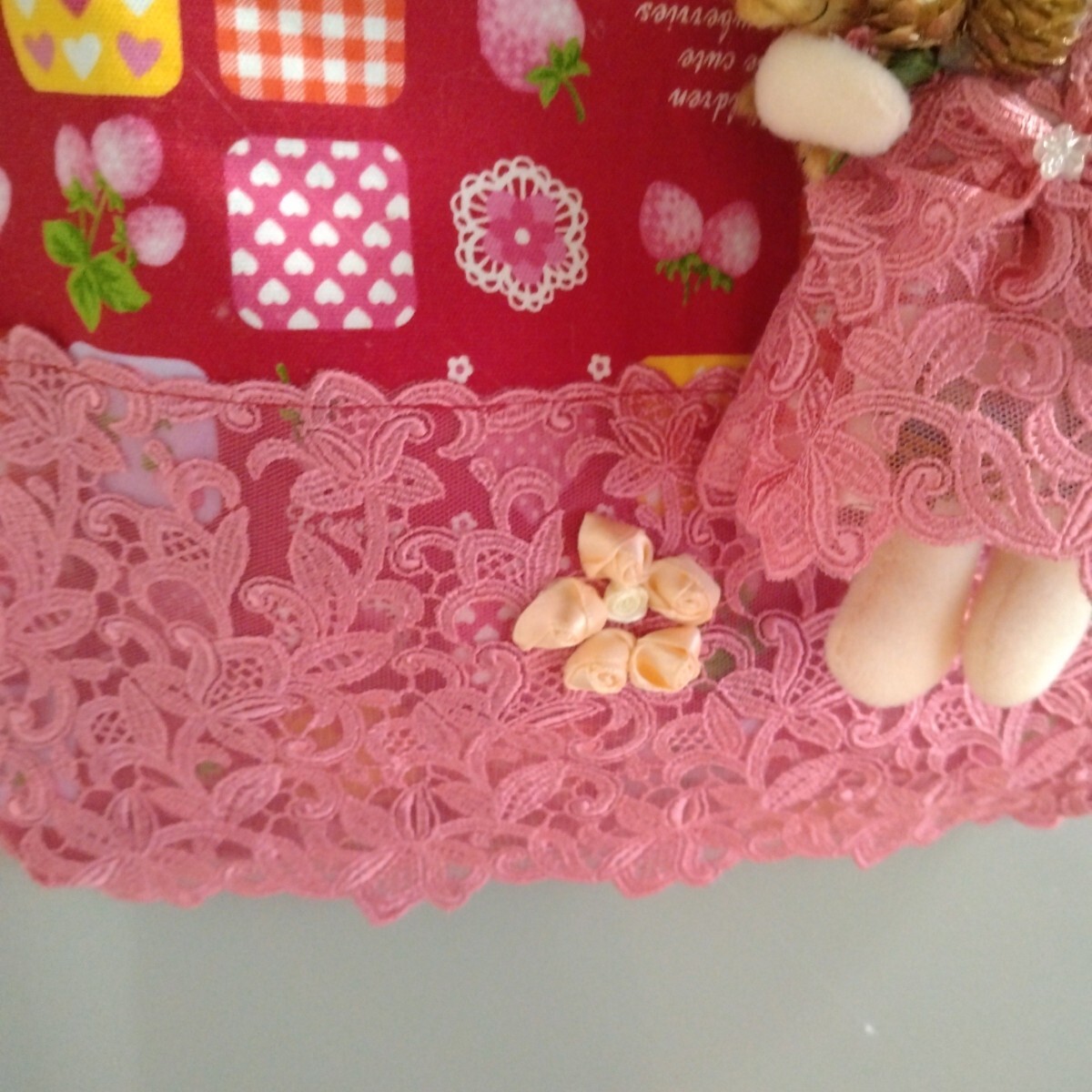 トートバッグに、ドールの服と同じレース生地を付けました。
