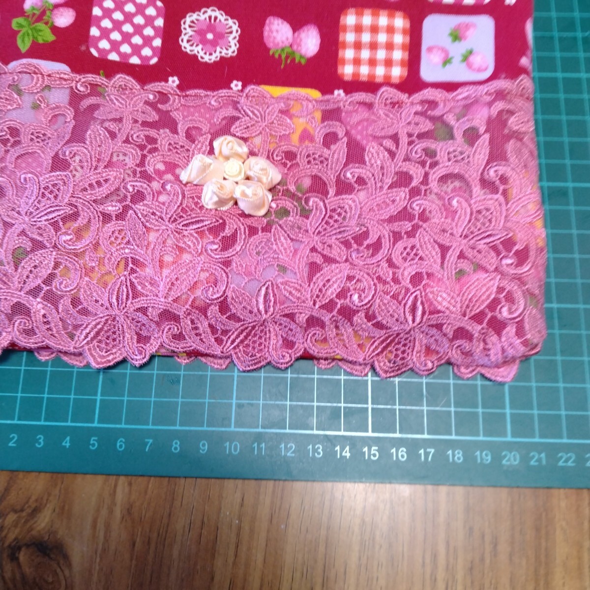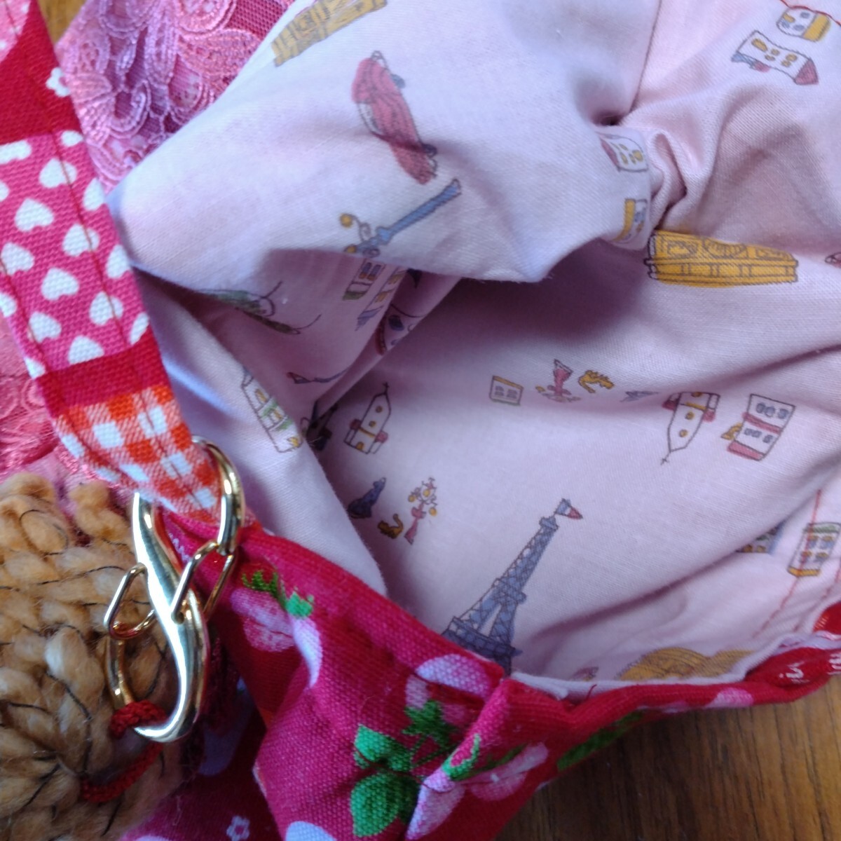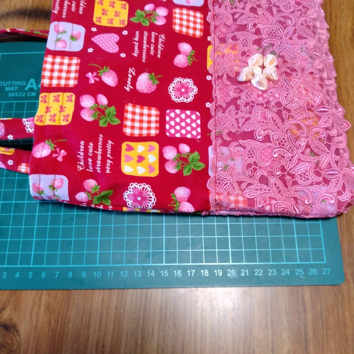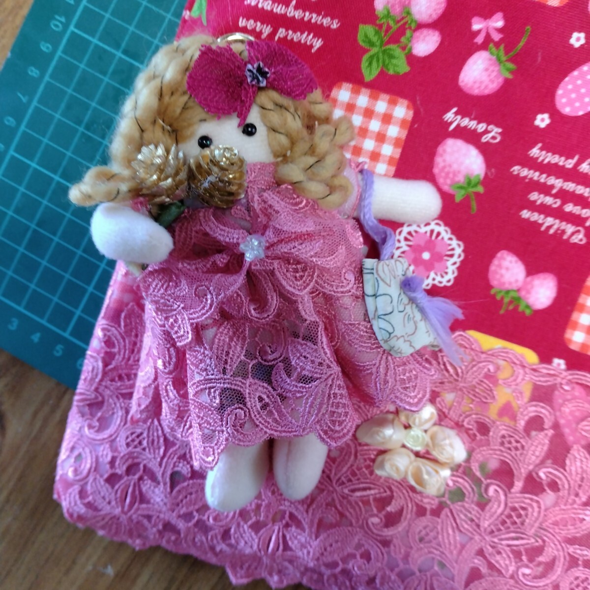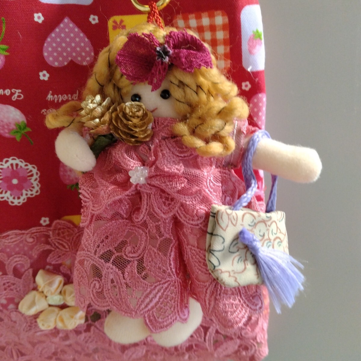 トートバッグに、ドールの服と同じレース生地を付けました。
