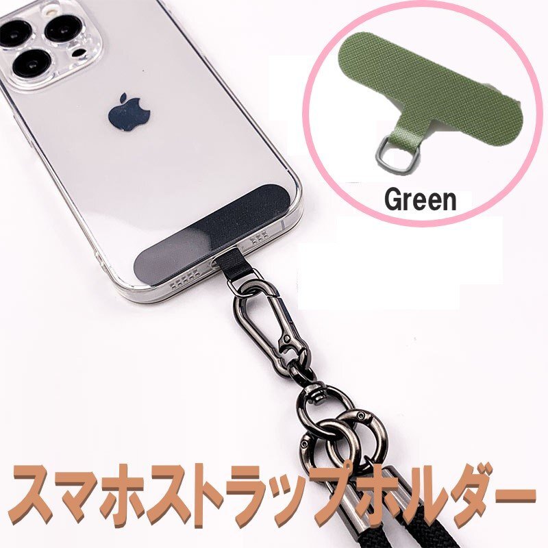 スマホ用 ストラップホルダー グリーン スマホショルダー Dカン金具 カード スマートフォンAndroid iPhone