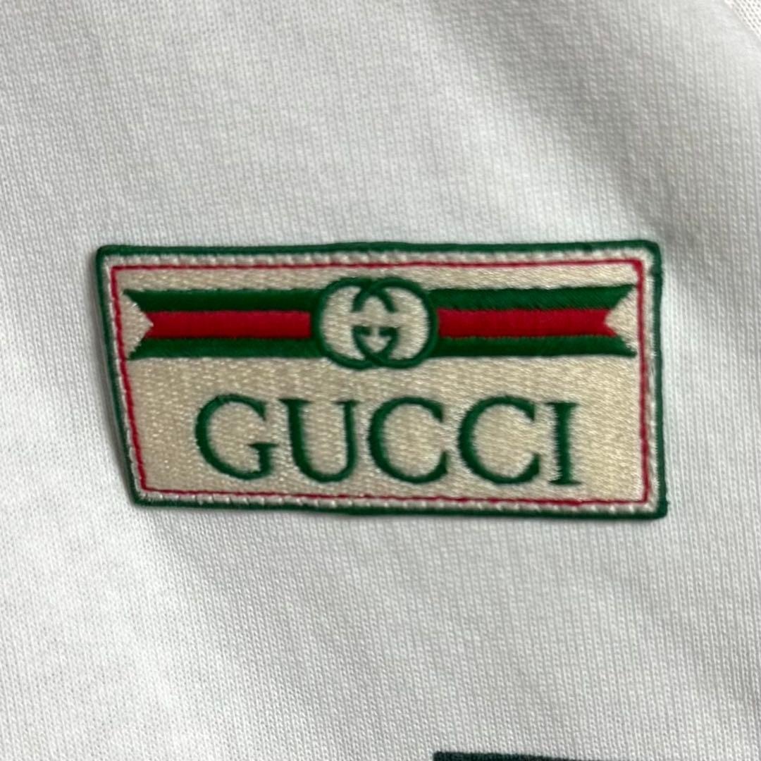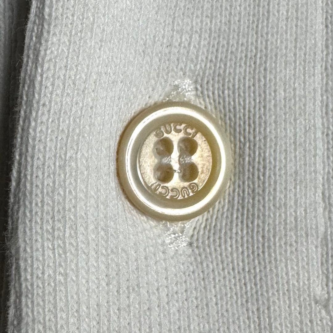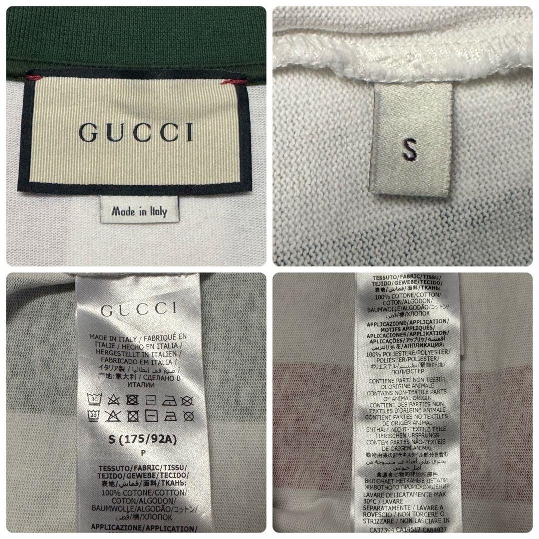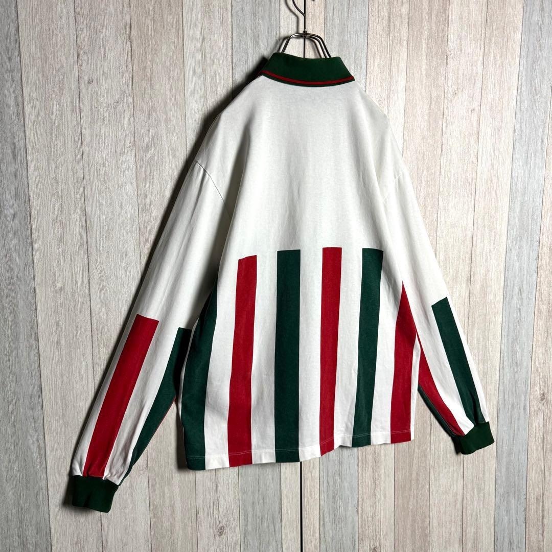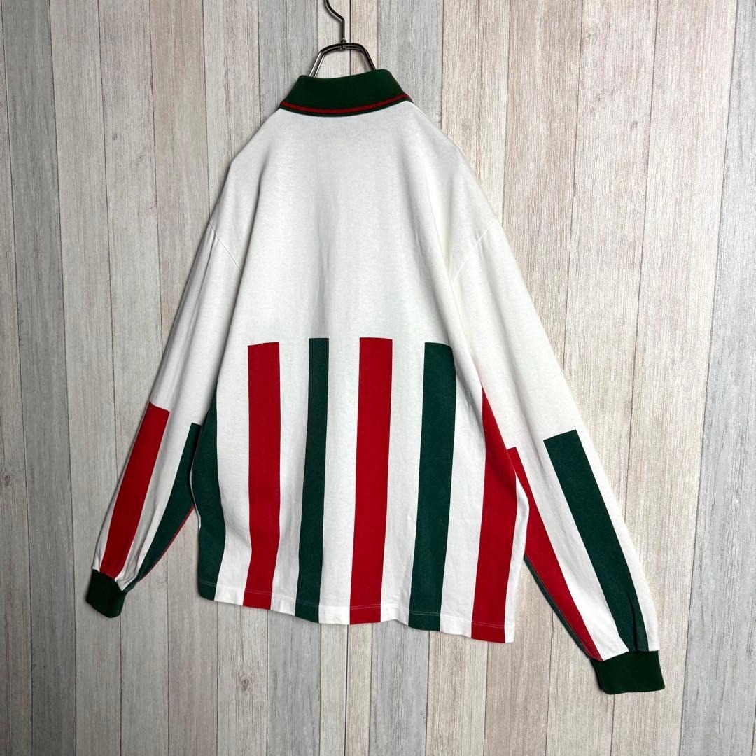 【希少デザイン・美品】イタリア製 GUCCI グッチ シェリーライン&刺繍ワッペンロゴ 長袖 ポロシャツ ホワイト 白 実寸XL相当