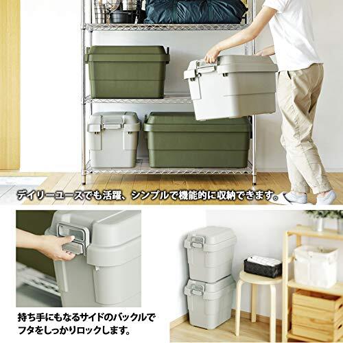 説明 ・フタの裏は格子状のリブを立てた特殊構造。耐荷重は100kg ・丈夫なので、工具入れとしても使用できます ・座ることができるので椅子としても使用できます ・ロック機能付きの取手は握りやすく、持ち運びもラクラク ・シンプルなデザインなので、玄関先やベランダにも置きやすい ・キズや汚れが目立たない、マットな仕上り