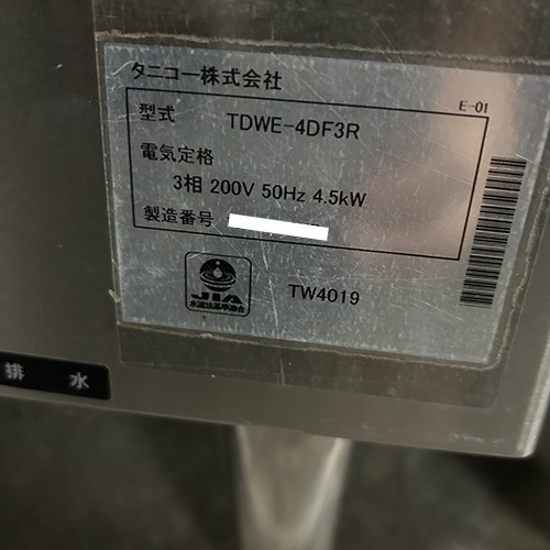 食器洗浄機 リターン式 タニコー TDWE-4DF3R 業務用 中古/送料別途見積