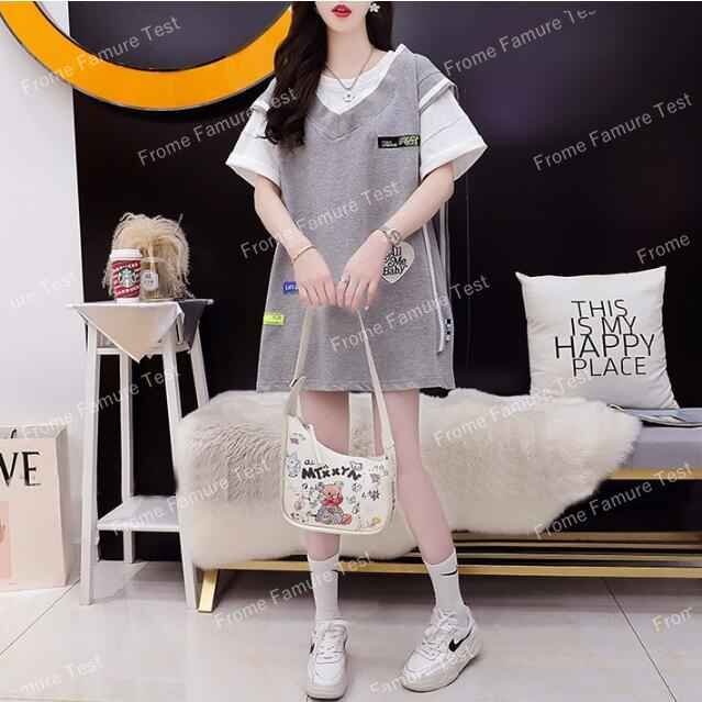 韓国風 女夏新しい 大きいサイズ半袖Tシャツ 気質ファッションTシャツ 学生Tシャツ L ホワイト