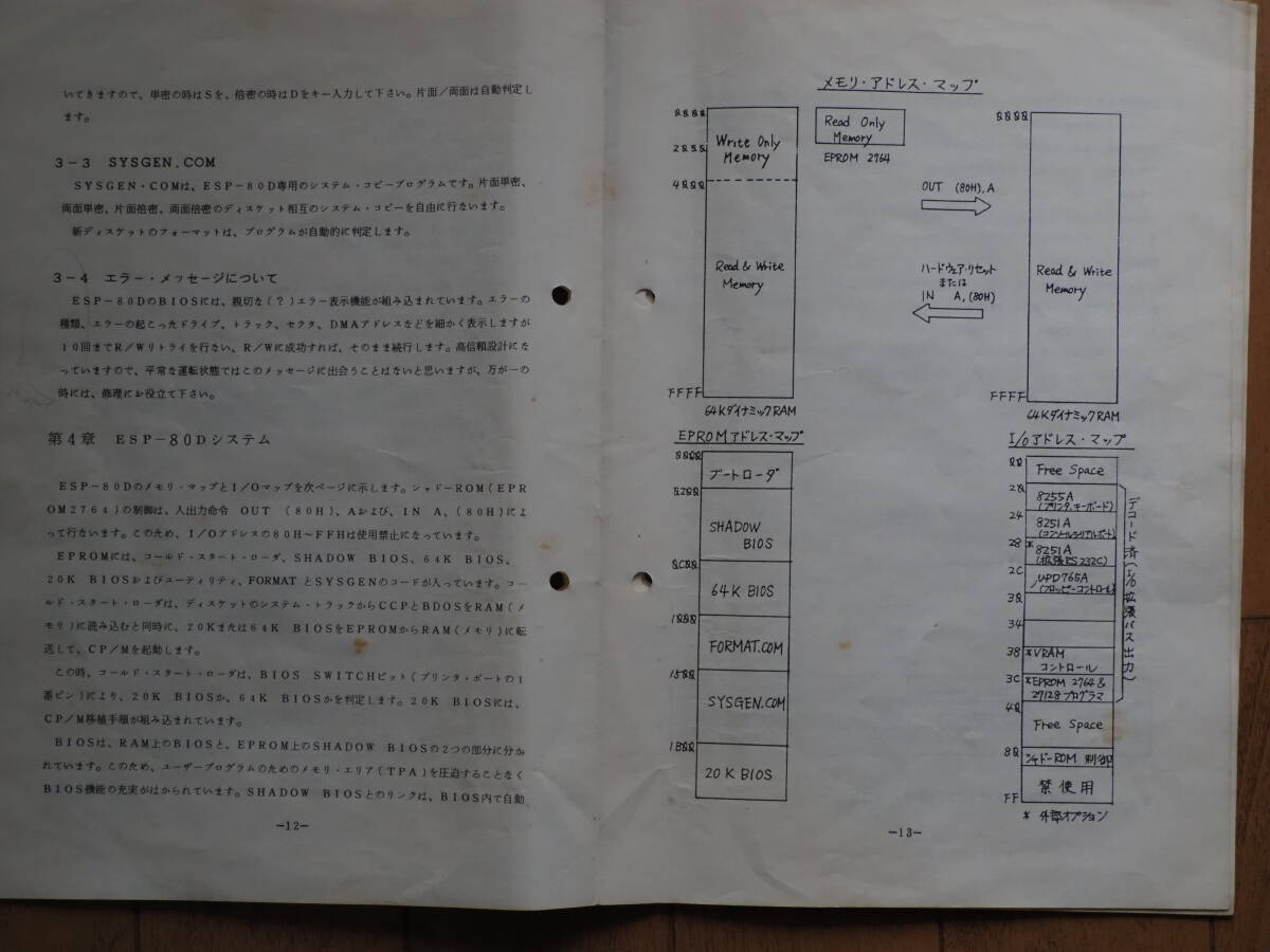 ESP-80Dは市販のインテルMDS版(片面単密)20K CP/Mシステムより”自動的”に、64K CP/Mシステムを生成する機構を備えています。その手順は次の通りです。