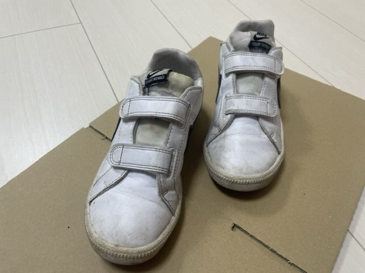 一部スニーカーは、名前を記入していたためマジックで塗りつぶしています。