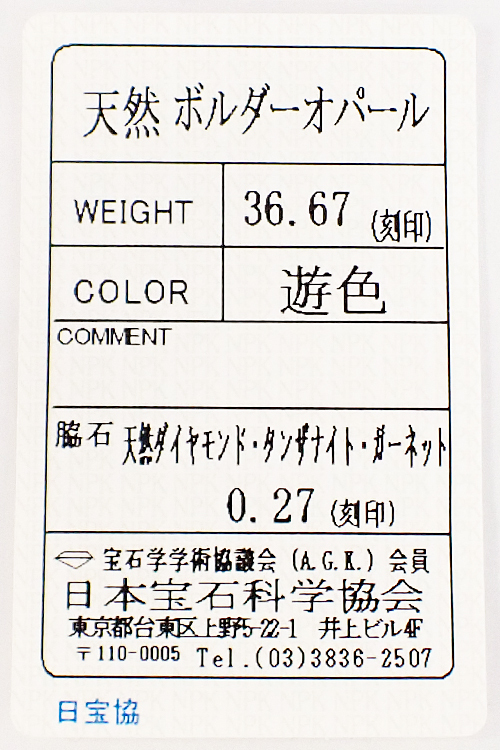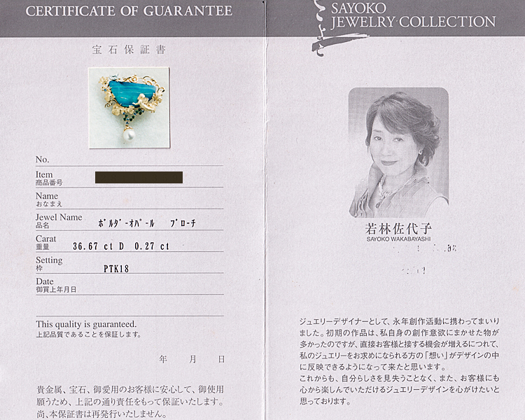 付属品 日本宝石科学協会ソーティング・保証書(カバー汚れあり)