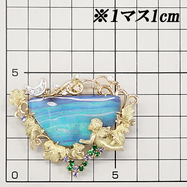 商品名 若林佐代子 ボルダーオパール ブローチ ダイヤモンド タンザナイト ガーネット K18イエローゴールド Pt900 ペンダントトップ 作家 デザイナー 天使 月 ムーン 植物 ボタニカル 梨地 マット ツヤ消し