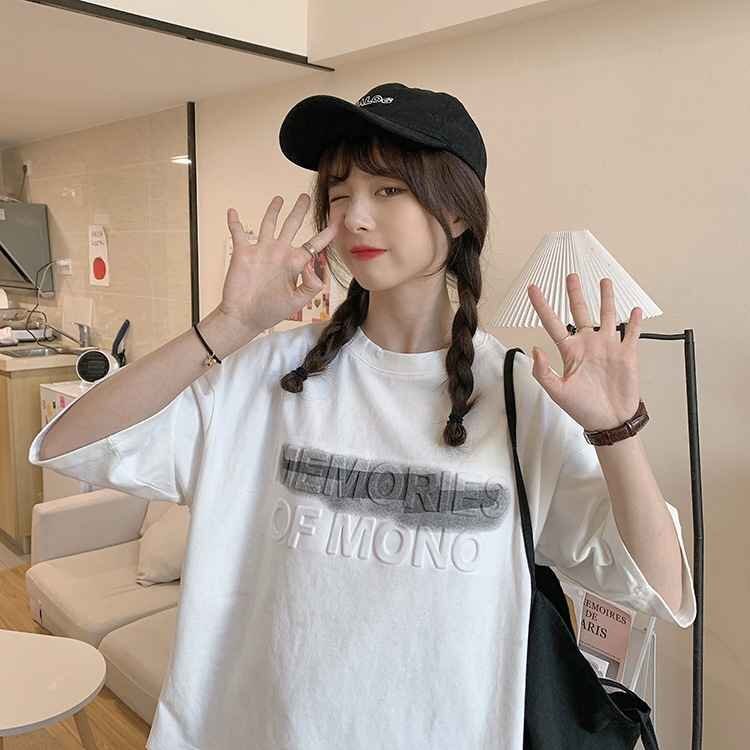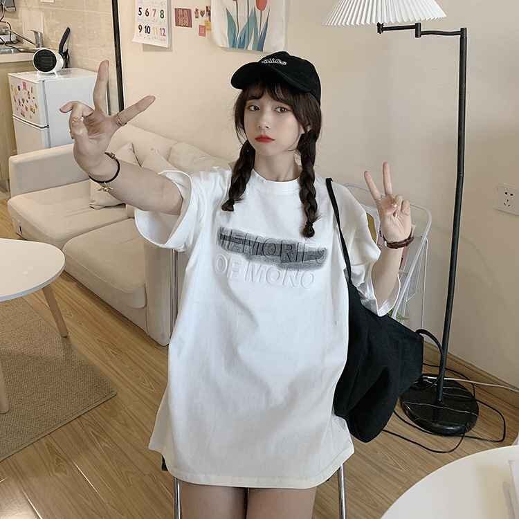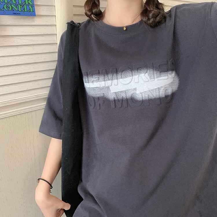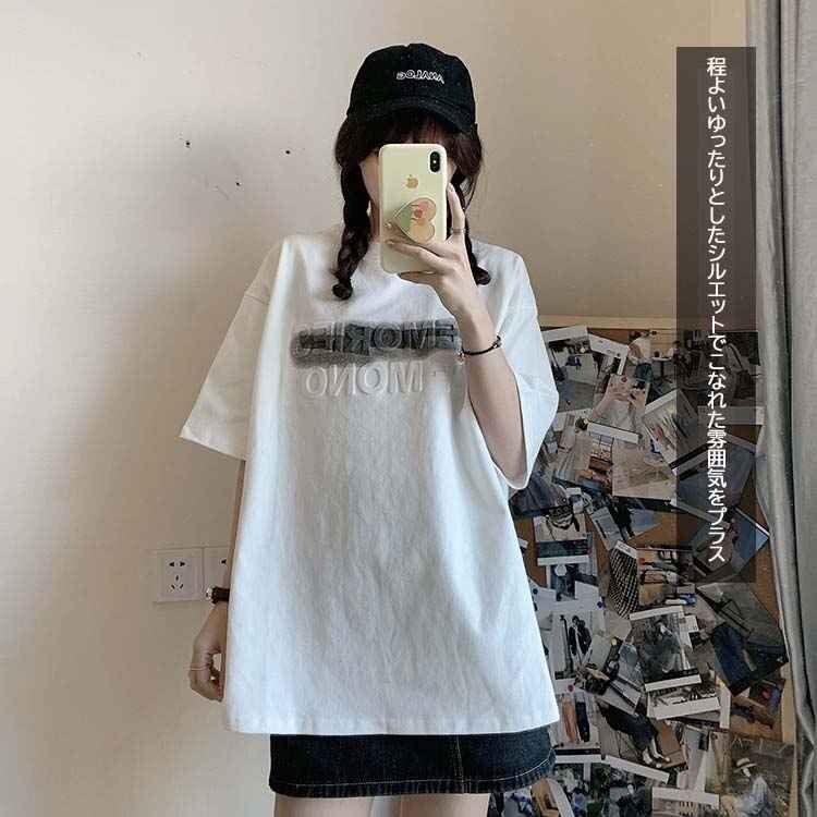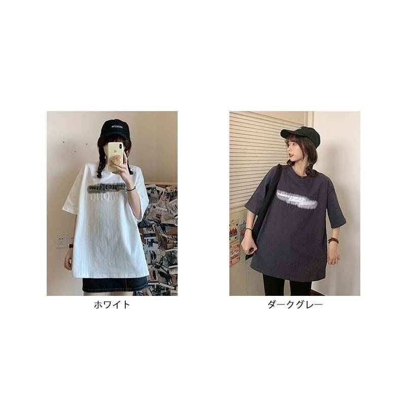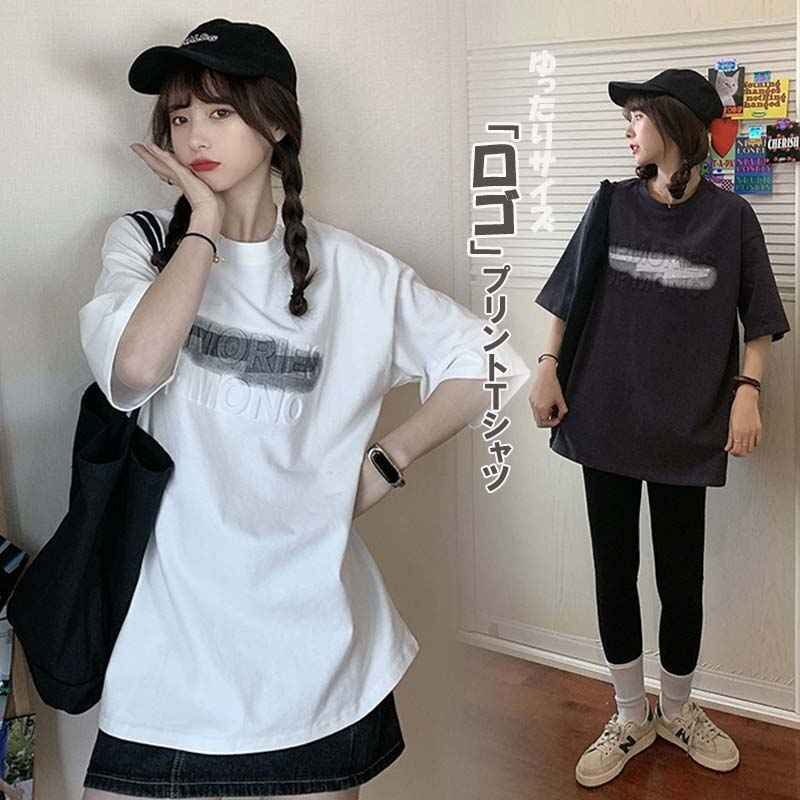 ・大きめのロゴプリントがお洒落な大きめサイズのTシャツ。程よいゆったりとしたシルエットでこなれた雰囲気をプラス。