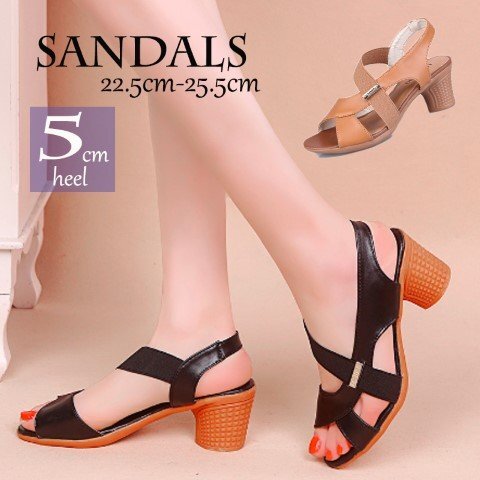 ・5cmヒールで脚長効果抜群の厚底サンダル。